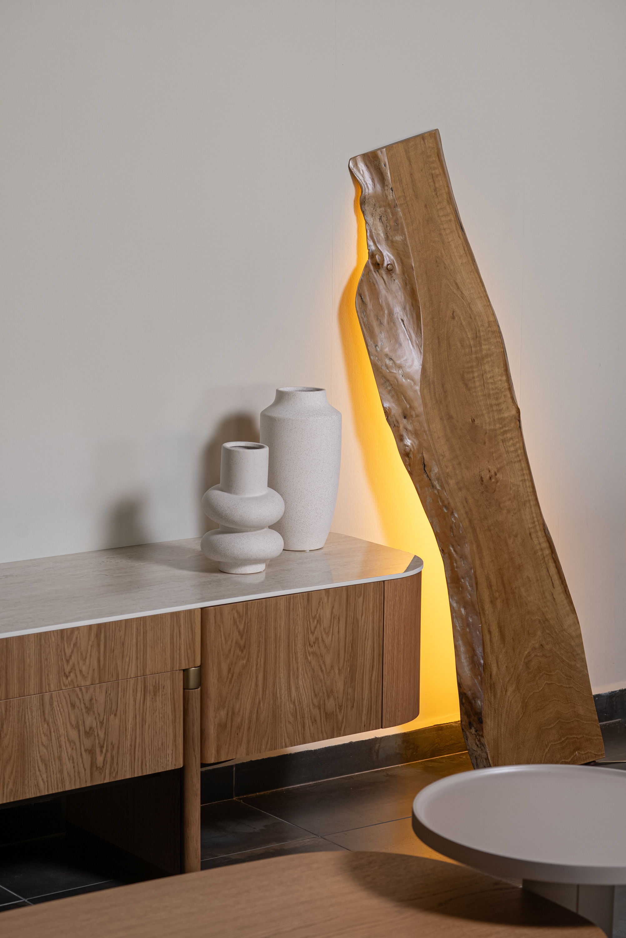 Το Επιδαπέδιο Φωτιστικό Masif light 04 είναι ένα μοναδικό χειροποίητο φωτιστικό από αυθεντικό μασίφ κορμό ξύλου, σχεδιασμένο να λειτουργεί ως γλυπτό φωτός στον χώρο. Η φυσική μορφή του ξύλου διατηρείται αναλλοίωτη, με εμφανή νερά, ρόζους και οργανικές καμπύλες που αναδεικνύουν την αυθεντικότητα του υλικού.