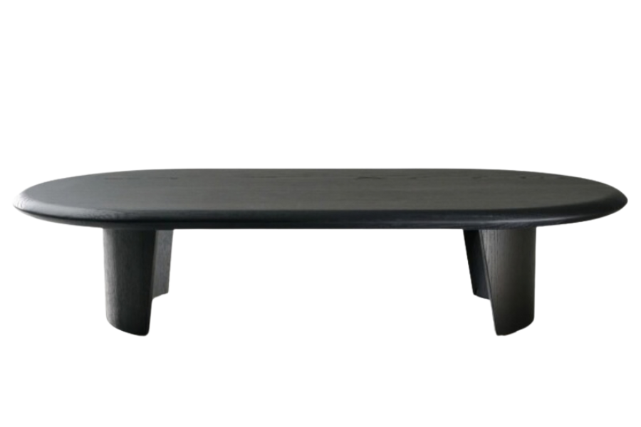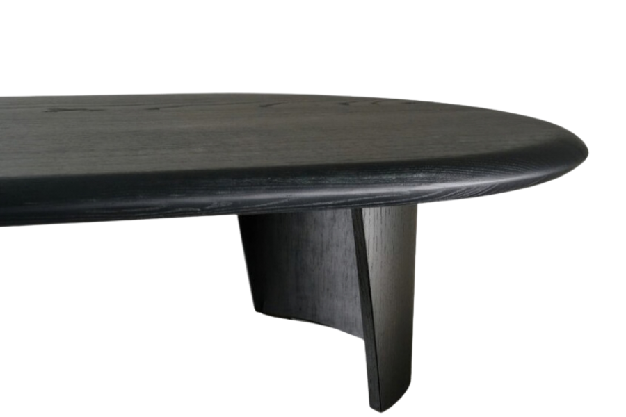 Ο σχεδιασμός του χαρακτηρίζεται από οβάλ επιφάνεια με απαλές καμπύλες γραμμές, που προσδίδουν ισορροπία και αρμονία στον χώρο. Η μαύρη απόχρωση του ξύλου δημιουργεί ένα elegant και διαχρονικό αποτέλεσμα, ιδανικό για σύγχρονα και minimal σαλόνια.