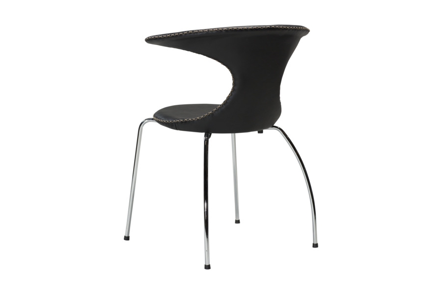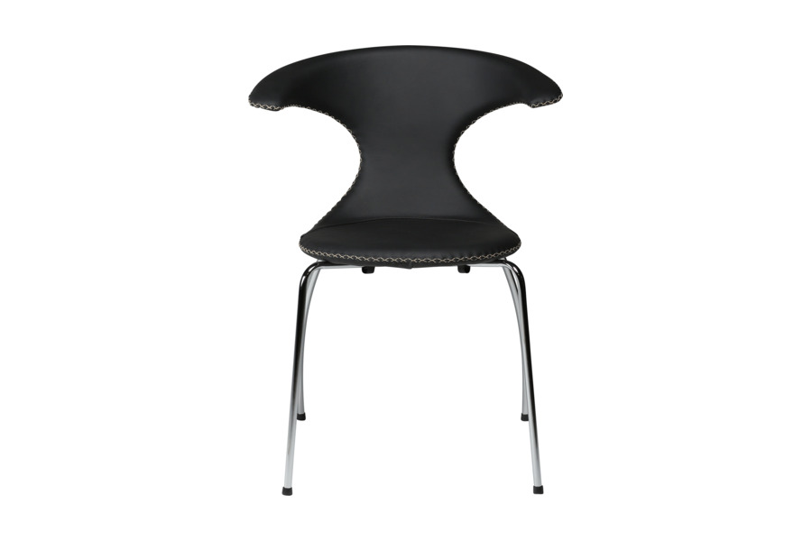 Η καρέκλα τραπεζαρίας Flair Black Leather με chrome πόδια αποτελεί μια πιο design-forward εκδοχή της σειράς, συνδυάζοντας premium υλικά με έντονο αισθητικό χαρακτήρα.