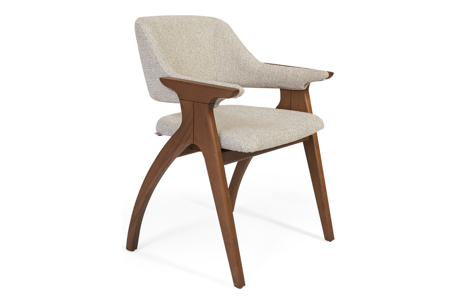 Η καρέκλα τραπεζαρίας Semir συνδυάζει τη διαχρονική αισθητική του ξύλου με την άνεση της υφασμάτινης επένδυσης, προσφέροντας ένα κομψό και λειτουργικό αποτέλεσμα για σύγχρονους χώρους.