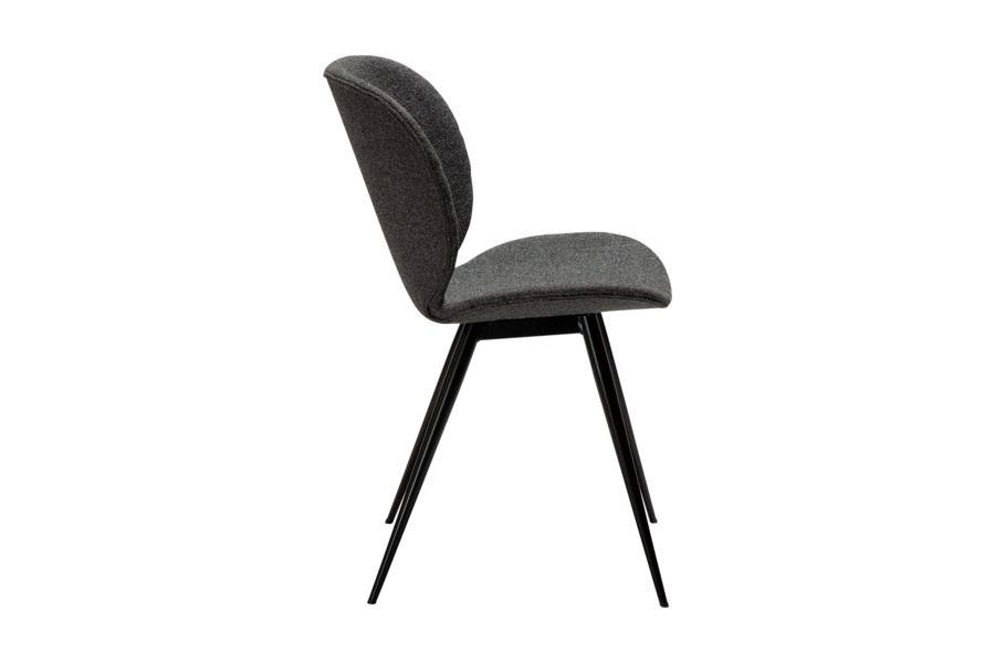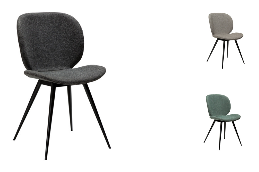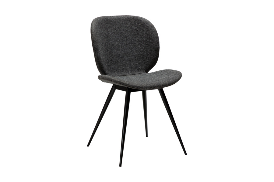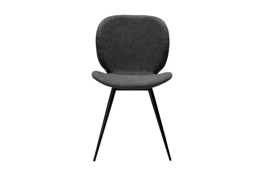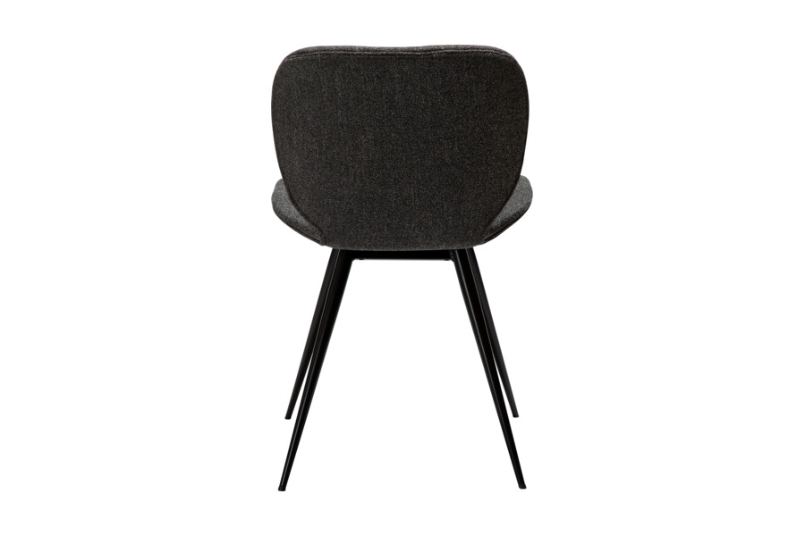 Η επένδυση από ύφασμα σε απόχρωση pebble grey προσφέρει ευχάριστη υφή και άνεση, ενώ παράλληλα προσθέτει διακριτική κομψότητα στην τραπεζαρία. Τα λεπτά μεταλλικά πόδια σε κωνικό σχήμα χαρίζουν ελαφρότητα στο design και εξασφαλίζουν σταθερότητα.