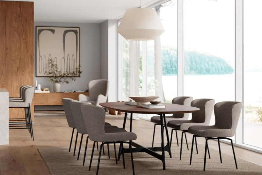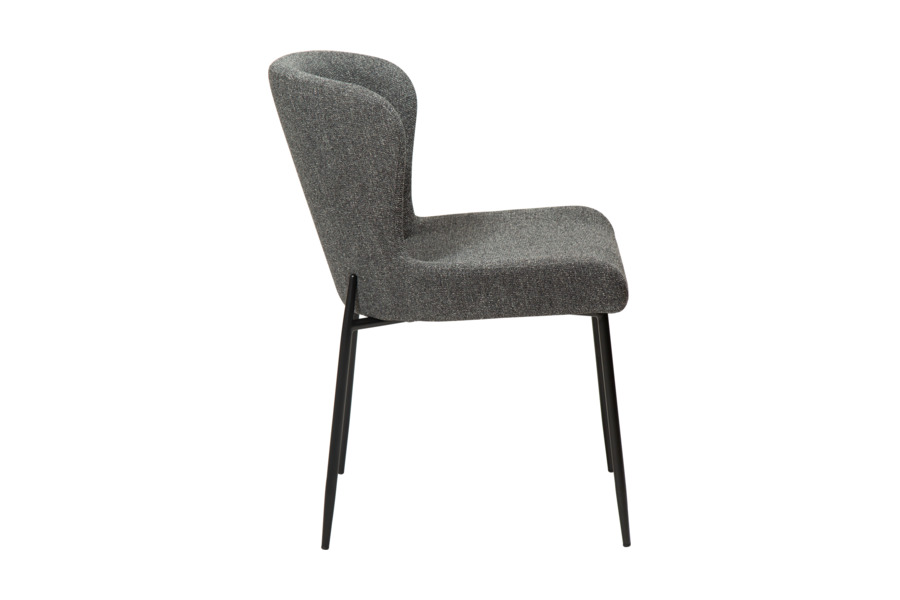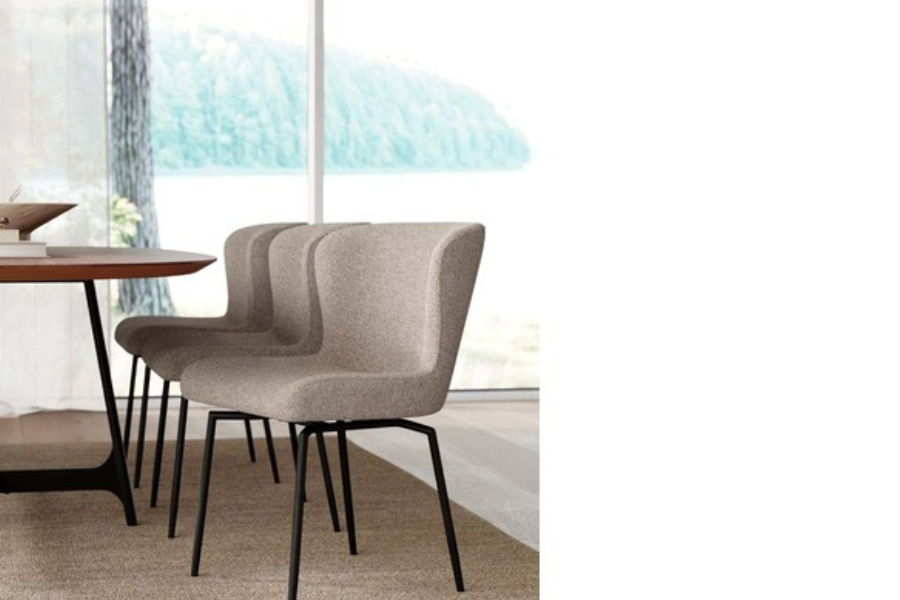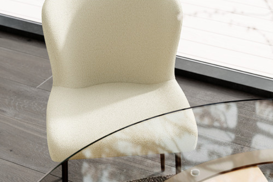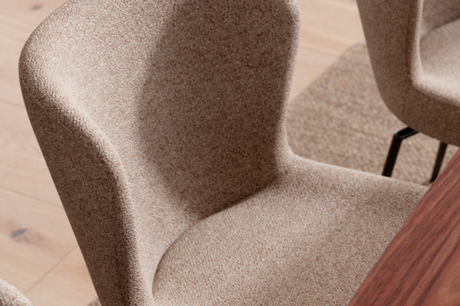 Η επένδυση από bouclé ύφασμα σε γκρι απόχρωση προσφέρει μοναδική υφή και ζεστή αίσθηση, ενώ ταυτόχρονα ενισχύει τον premium χαρακτήρα της καρέκλας. Το ύφασμα αυτό είναι ιδιαίτερα δημοφιλές σε μοντέρνους χώρους, προσθέτοντας βάθος και στιλ.