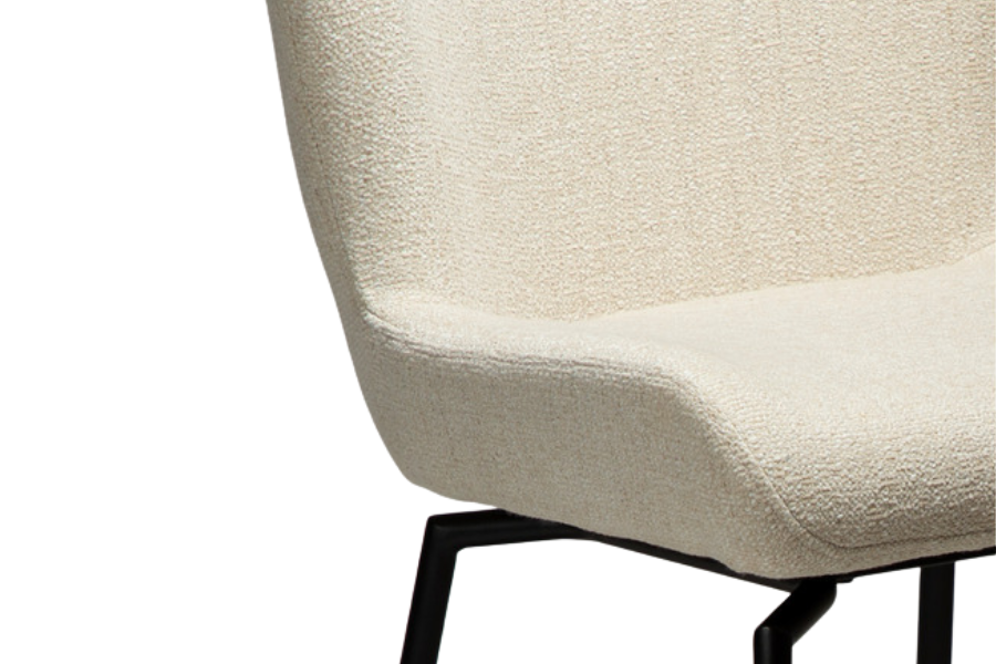 Η επένδυση από bouclé ύφασμα σε simply beige απόχρωση προσφέρει φωτεινή και διαχρονική αισθητική, που ταιριάζει εύκολα σε minimal και σύγχρονους χώρους.