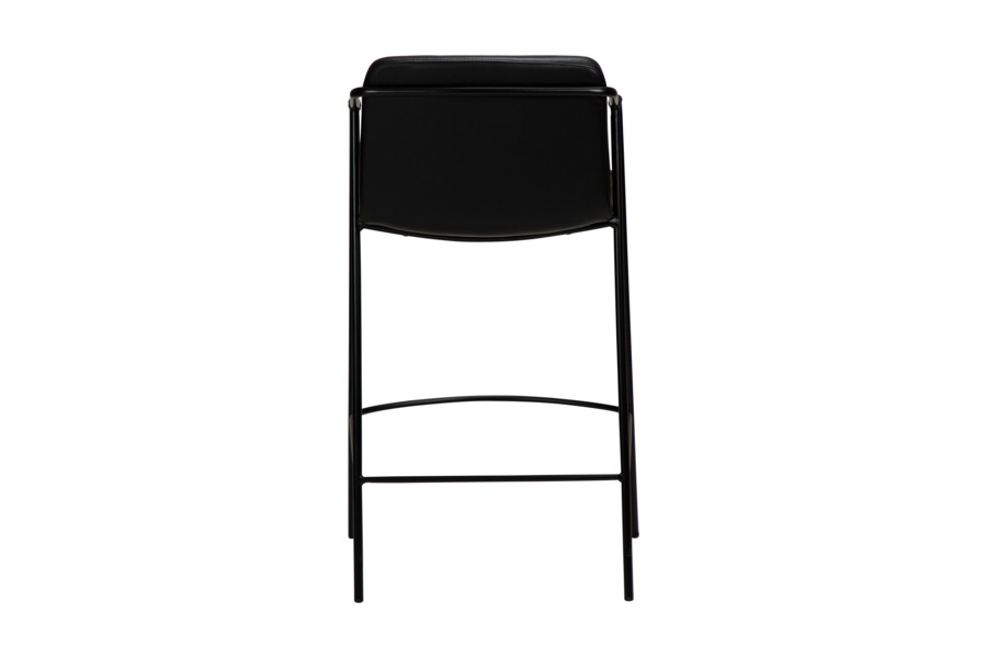 Το κάθισμα και η πλάτη διαθέτουν μαλακή επένδυση από τεχνητό δέρμα σε απόχρωση Vintage Black, προσφέροντας άνεση και στήριξη κατά τη διάρκεια της χρήσης. Η απαλή υφή του υλικού και η ελαφρώς vintage αισθητική του δημιουργούν ένα κομψό αποτέλεσμα που ταιριάζει ιδανικά σε σύγχρονες κουζίνες, πάγκους ή χώρους bar.
