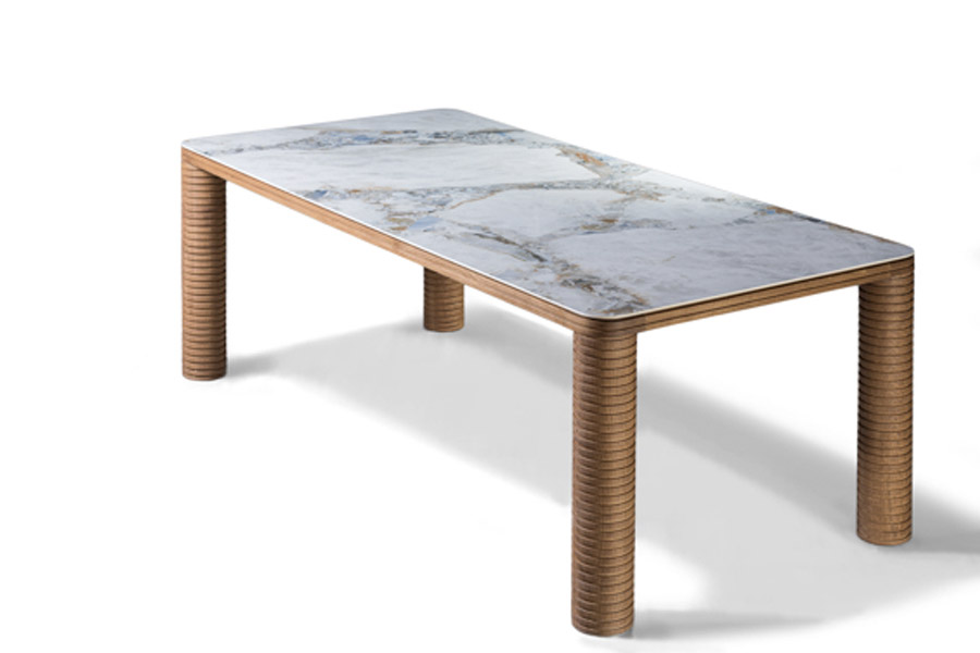 Το τραπέζι Bari ενσωματώνει την αρμονία του φυσικού μαρμάρου με τη ζεστασιά του ξύλου, δημιουργώντας ένα κομμάτι που ξεχωρίζει για την αισθητική του. Η επιφάνεια από μάρμαρο χαρίζει διαχρονική πολυτέλεια και μοναδικά νερά, ενώ τα στιβαρά ξύλινα πόδια με τις ανάγλυφες λεπτομέρειες προσδίδουν μοντέρνο χαρακτήρα. Ένα τραπέζι που συνδυάζει την πρακτικότητα με το statement design, ιδανικό για να γίνει το κεντρικό σημείο κάθε τραπεζαρίας.