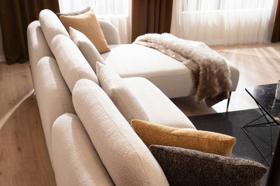 Η γωνιακή του διάταξη προσφέρει άνεση τόσο στην καθημερινότητα όσο και στη φιλοξενία.