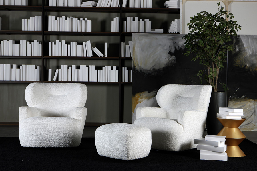 Η πολυθρόνα Coco φέρνει ζεστασιά και κομψότητα σε κάθε σαλόνι. Με επένδυση από υφασμάτινο μπουκλέ σε λευκή απόχρωση και αναπαυτικό κάθισμα, προσφέρει αίσθηση πολυτέλειας και άνεσης. Ο ιδιαίτερος σχεδιασμός της με καμπύλες πλάτες και φαρδιά μπράτσα την καθιστά ιδανική για cozy καθιστικά, γωνιές ανάγνωσης ή χώρους φιλοξενίας με μοντέρνο χαρακτήρα. Στην τιμή δεν συμπεριλαμβάνεται το σκαμπό.
