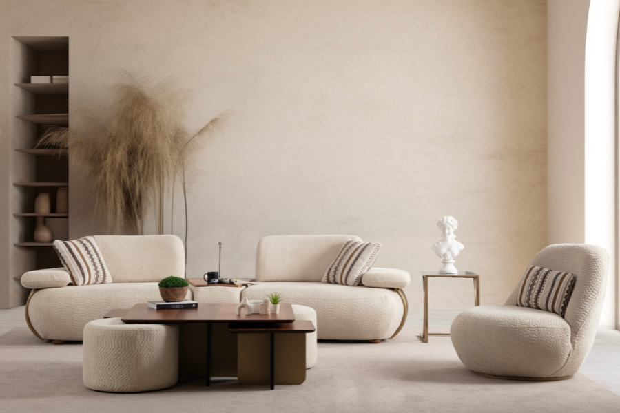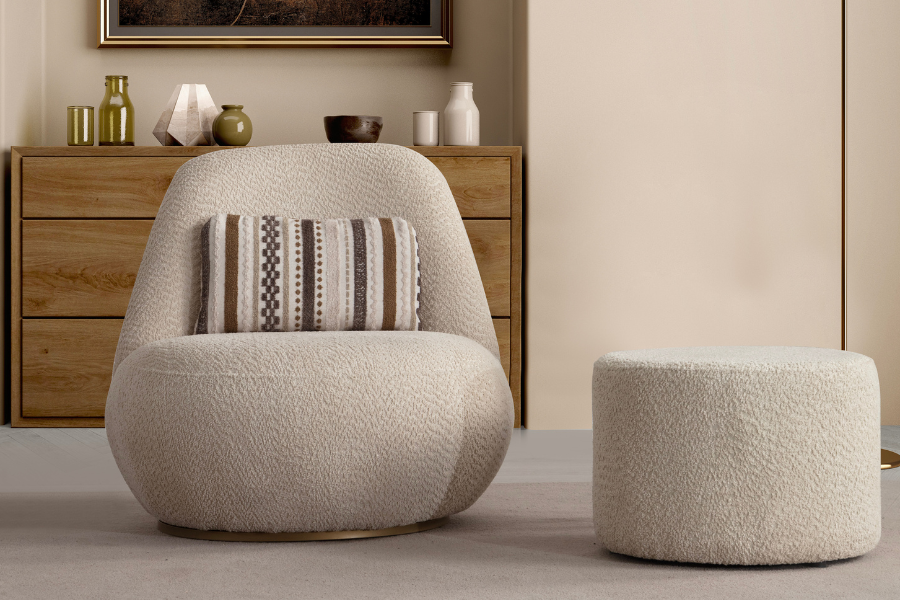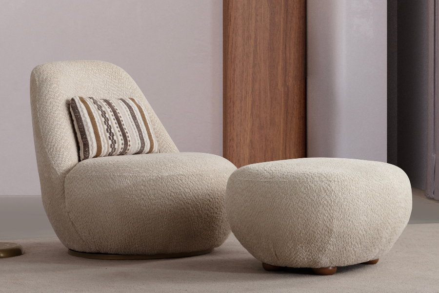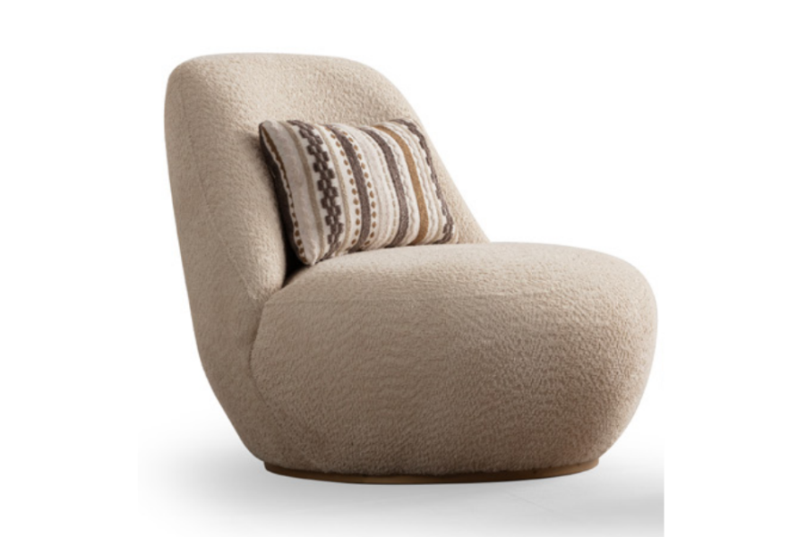 Ο σχεδιασμός της βασίζεται σε απαλές καμπύλες και ισορροπημένες αναλογίες, δημιουργώντας ένα φιλόξενο σημείο χαλάρωσης στον χώρο.