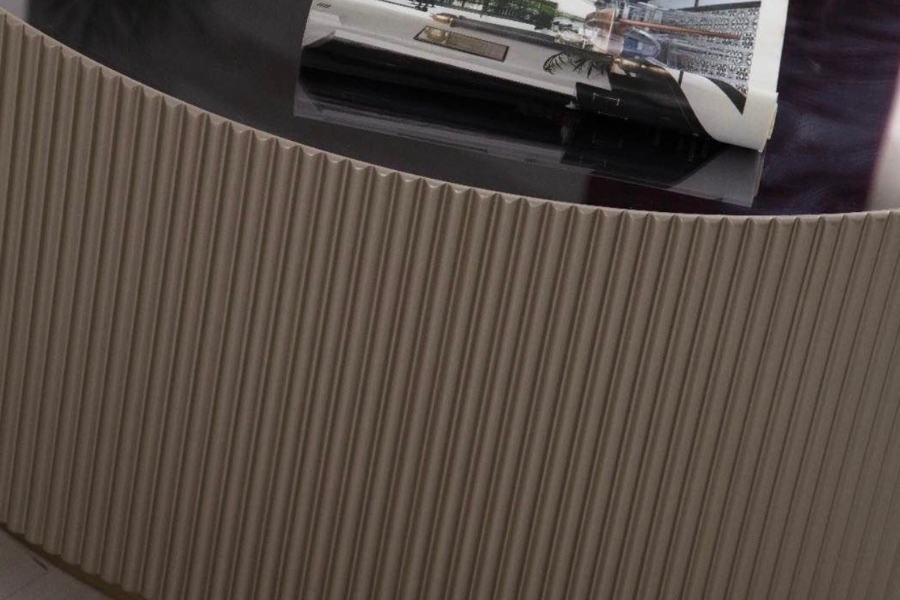 Ο στρογγυλός του σχεδιασμός σε συνδυασμό με την ανάγλυφη κατακόρυφη υφή της βάσης δημιουργεί ένα εκλεπτυσμένο αποτέλεσμα που προσθέτει χαρακτήρα στον χώρο.