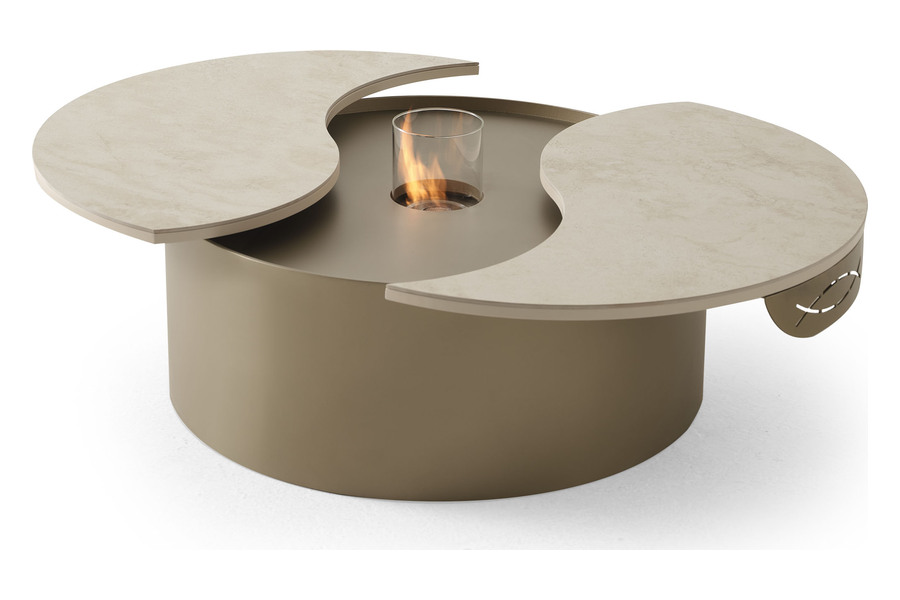Το τραπεζάκι σαλονιού Νο 1101 αποτελεί ένα εντυπωσιακό design αντικείμενο που συνδυάζει λειτουργικότητα, αισθητική και καινοτομία. Ο στρογγυλός του σχεδιασμός με τις καμπύλες, μετακινούμενες επιφάνειες δημιουργεί ένα μοναδικό οπτικό αποτέλεσμα, ενώ το ενσωματωμένο bioethanol burner προσφέρει ατμοσφαιρική φωτιά χωρίς καπνό ή οσμές.