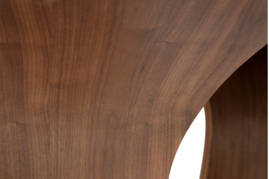 Η επιφάνεια από καπλαμά δρυός (oak veneer) σε whitewashed απόχρωση αναδεικνύει τη φυσική υφή του ξύλου και προσφέρει φωτεινότητα στον χώρο. Το σχήμα της επιφάνειας, με τις απαλές καμπύλες και τις στρογγυλεμένες άκρες, ενισχύει την αίσθηση αρμονίας και ροής.