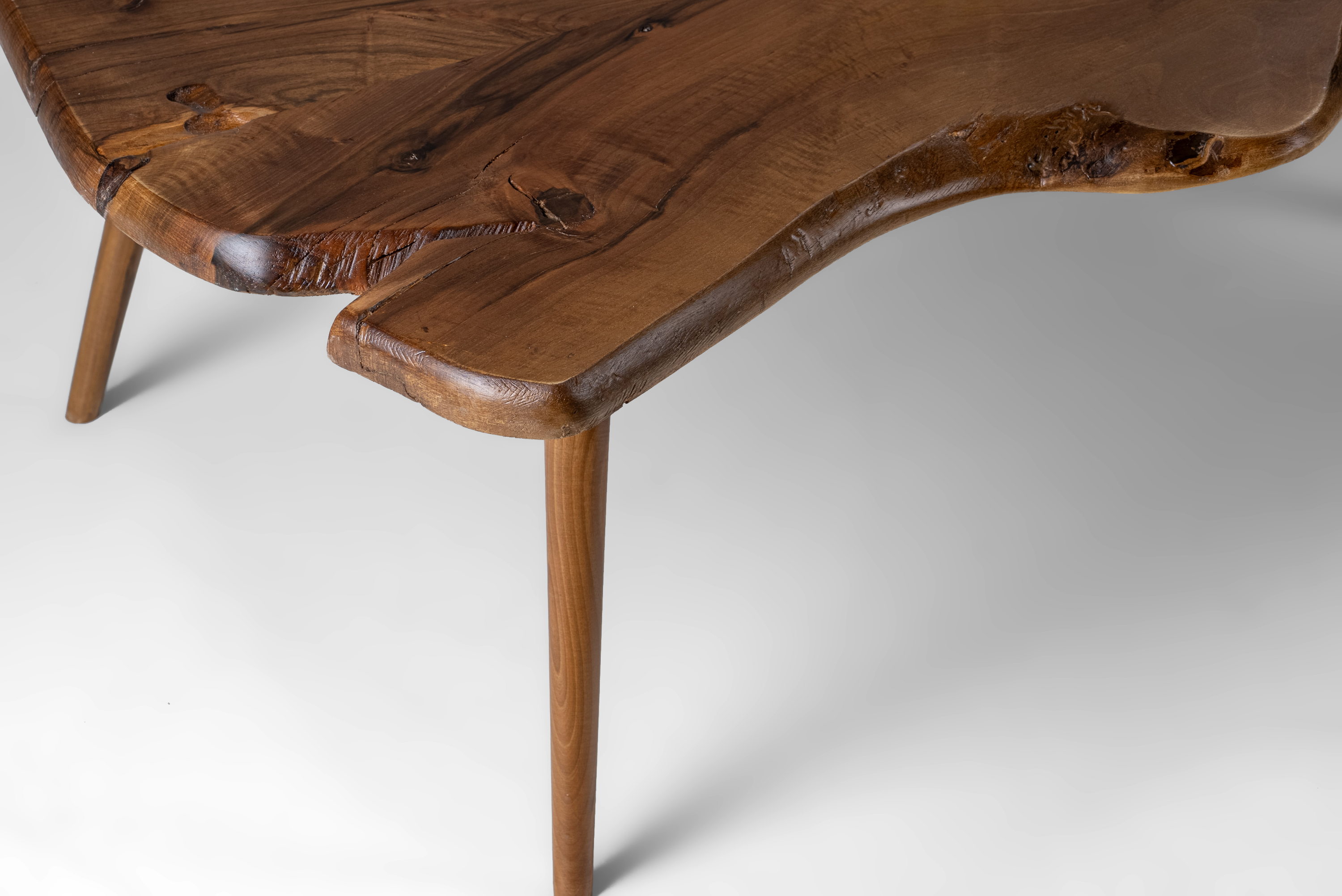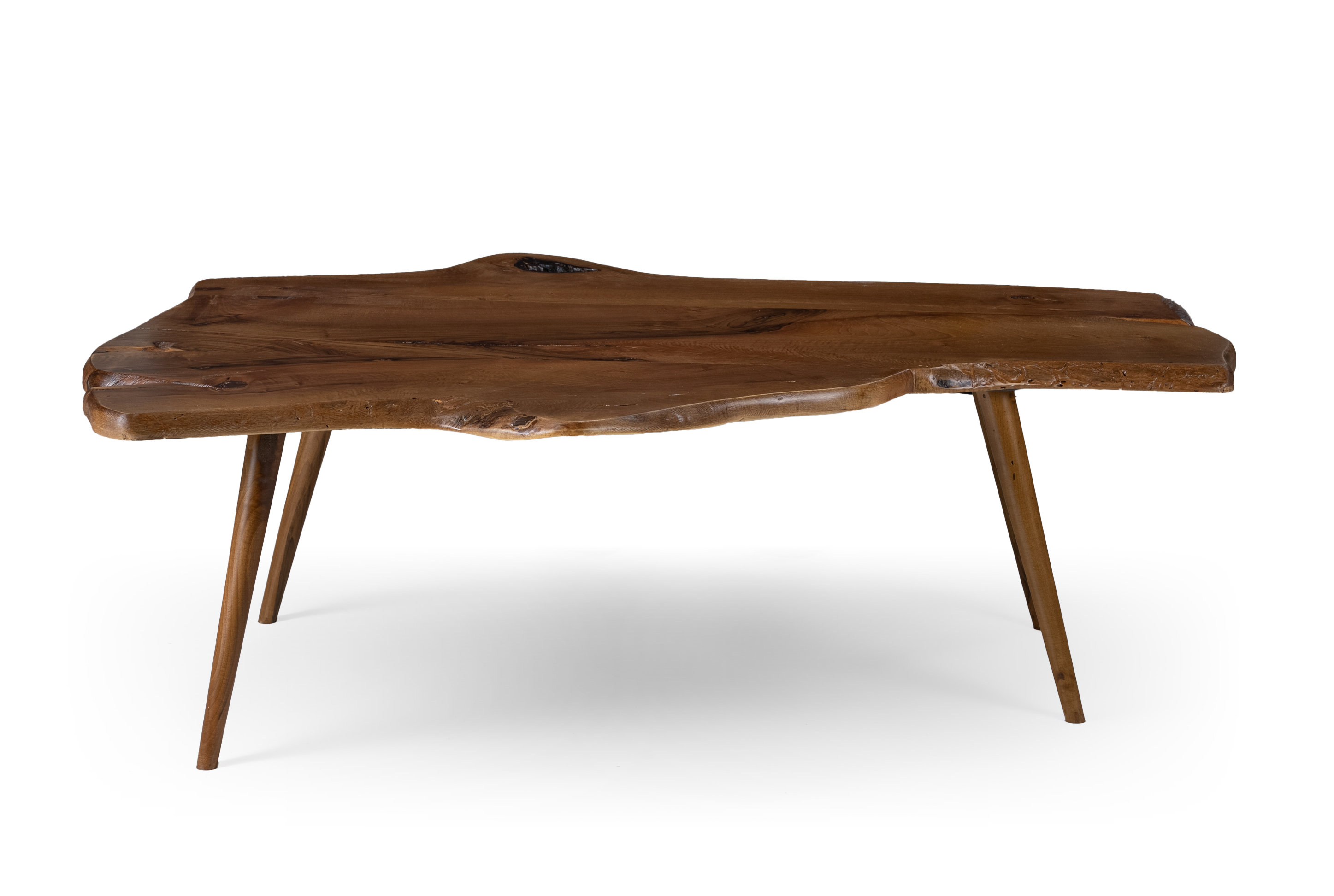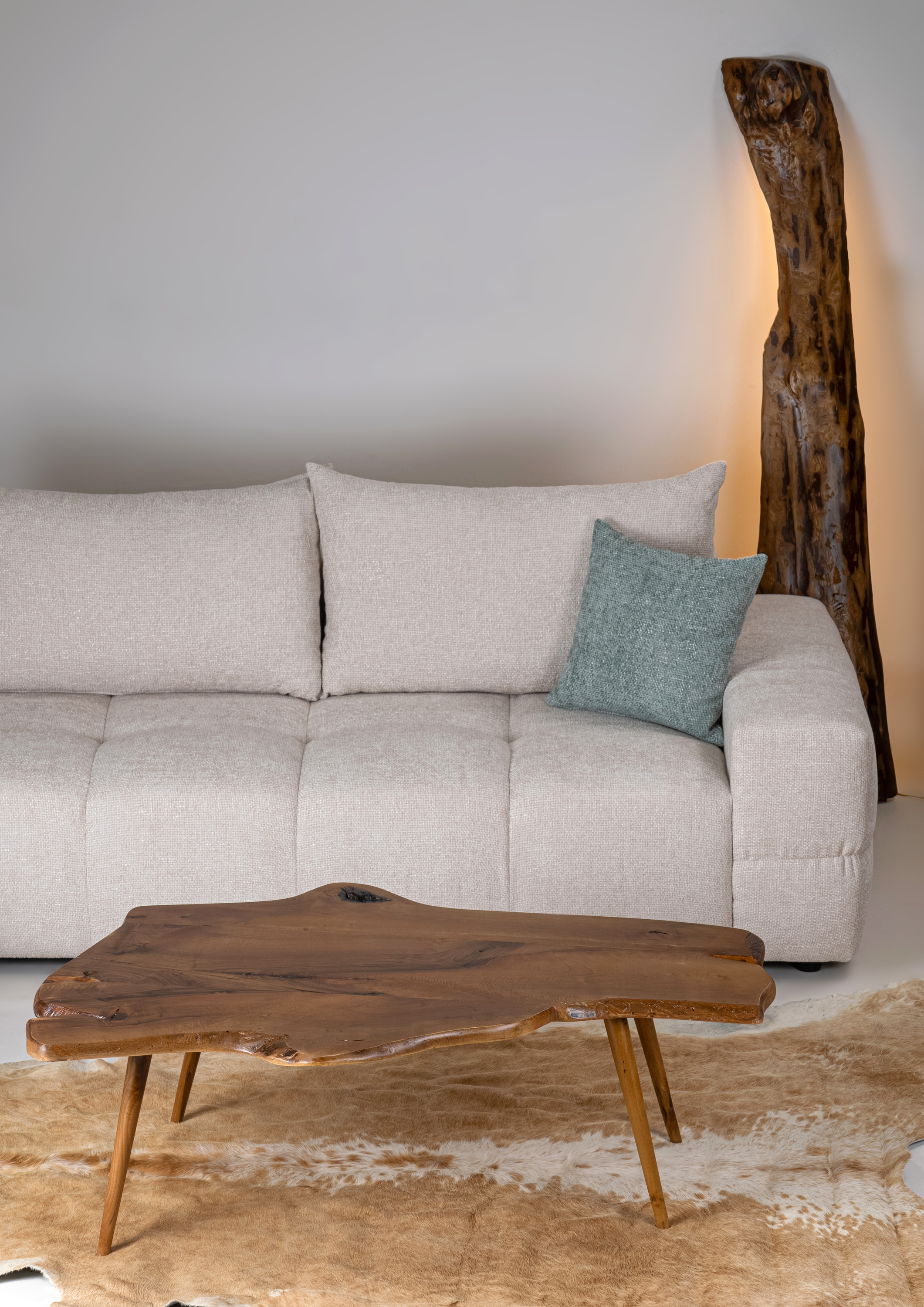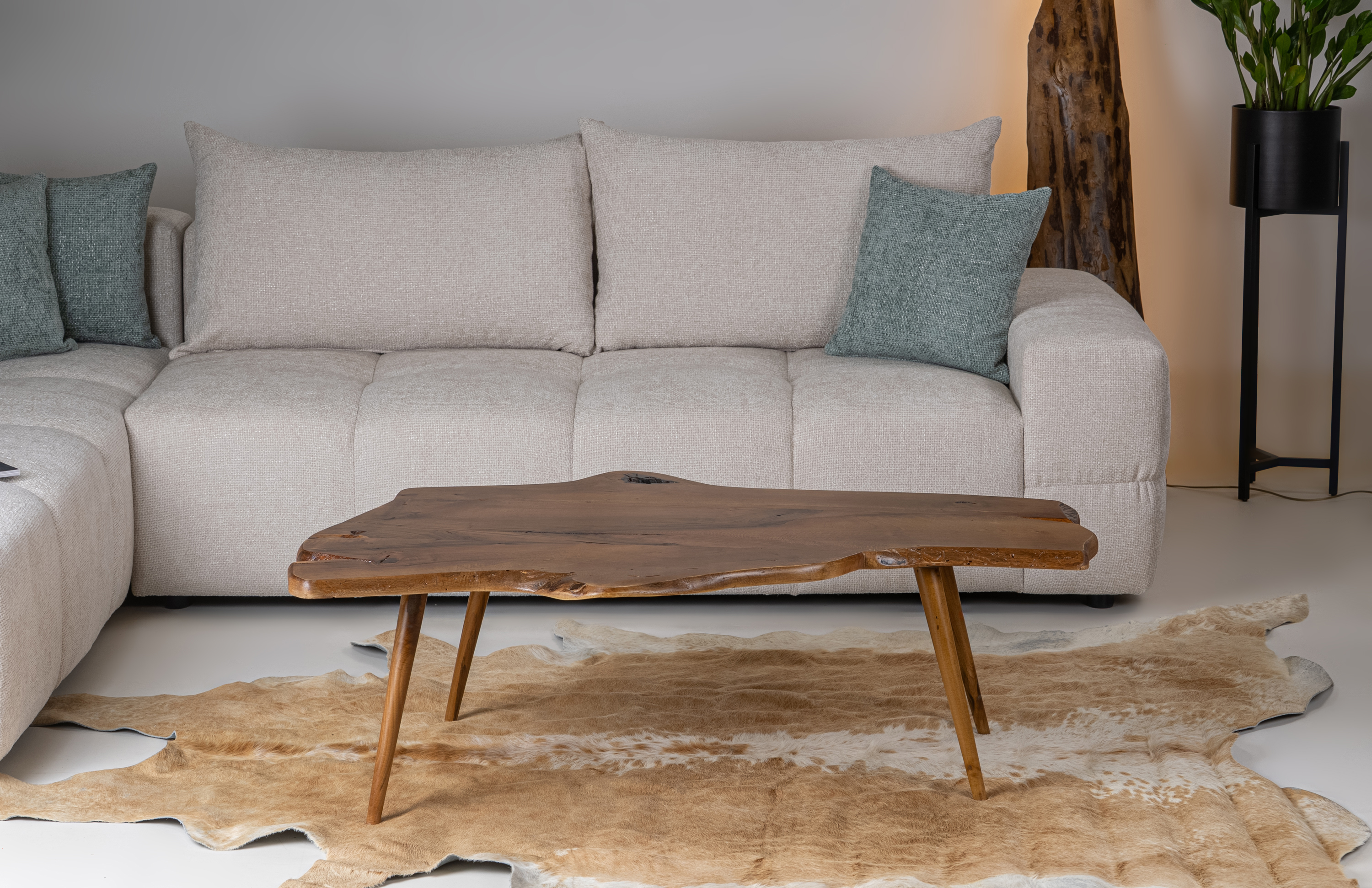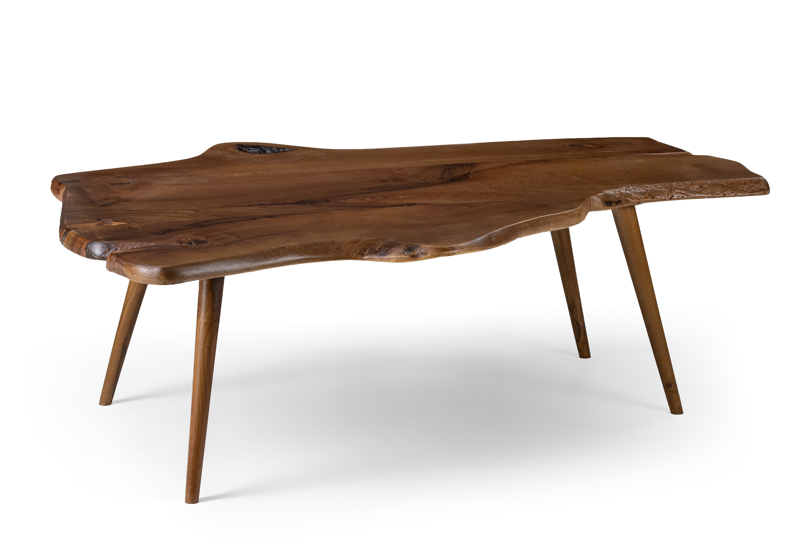 Το τραπεζάκι σαλονιού Masif walnut 05 αποτελεί ένα μοναδικό έπιπλο από 100% μασίφ ξύλο καρυδιάς, σχεδιασμένο για να αναδεικνύει τη φυσική ομορφιά του ξύλου. Η επιφάνειά του διατηρεί το αυθεντικό οργανικό σχήμα του κορμού, με εμφανή νερά, ρόζους και φυσικές ατέλειες που προσδίδουν χαρακτήρα και αυθεντικότητα.