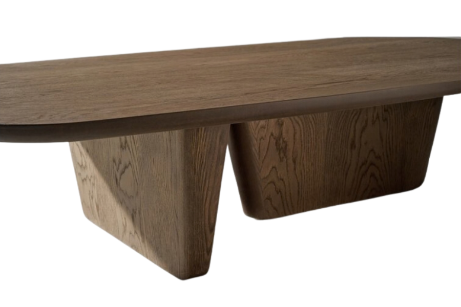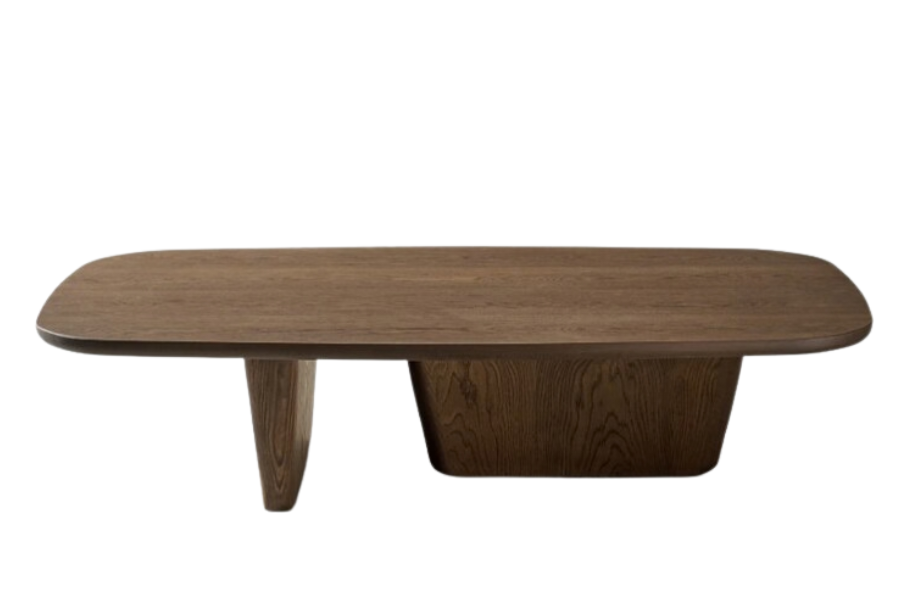 Η επιφάνειά του διαθέτει οργανικό ορθογώνιο σχήμα με στρογγυλεμένες άκρες, προσφέροντας μια αρμονική και ισορροπημένη αισθητική που ταιριάζει ιδανικά σε μοντέρνα και minimal σαλόνια. Η φυσική υφή και τα νερά του ξύλου αναδεικνύουν την ποιότητα του υλικού και προσδίδουν ζεστασιά στον χώρο.