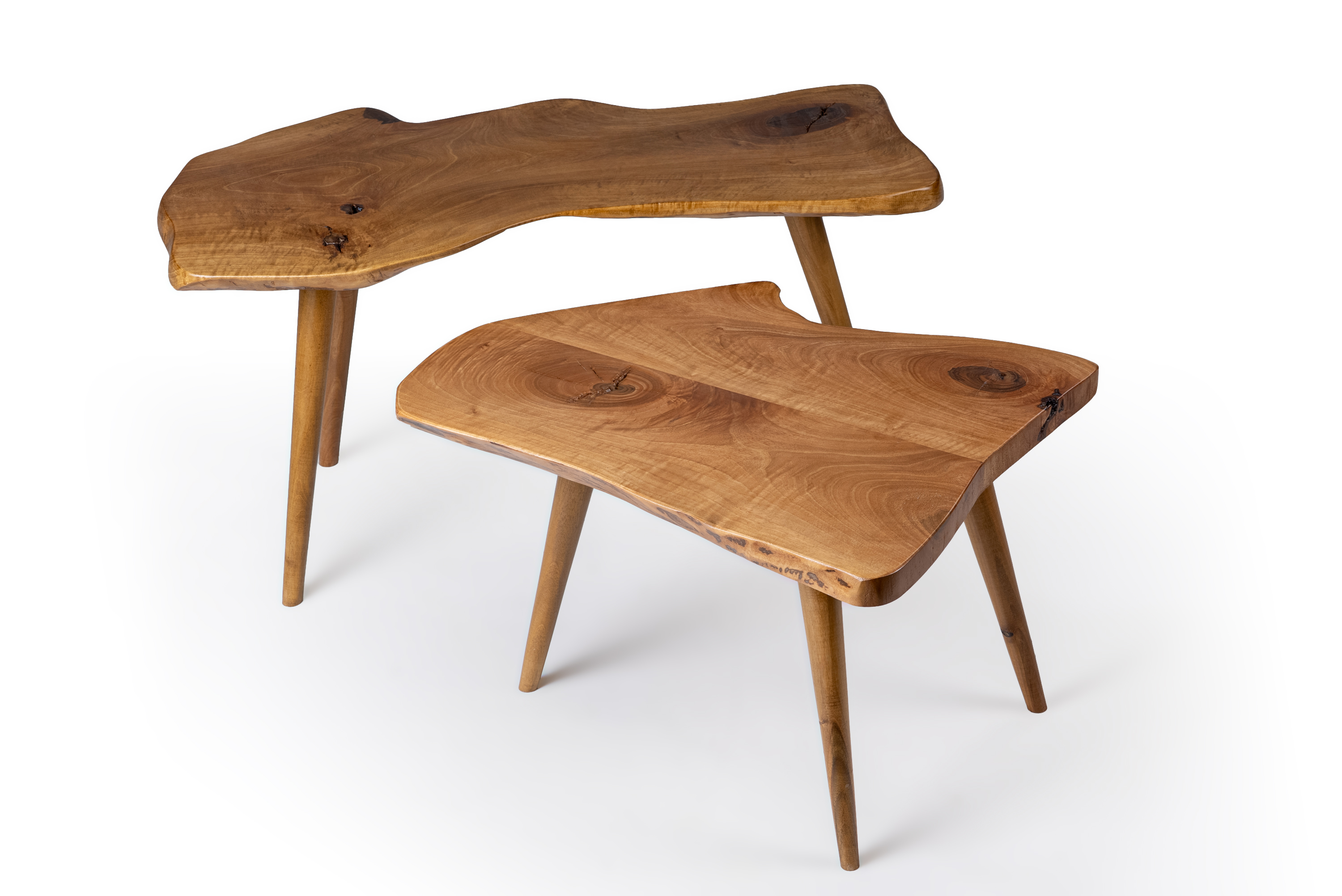 Το σετ βοηθητικών τραπεζιών Masif walnut 22 αποτελεί μια εκλεπτυσμένη επιλογή για κάθε σύγχρονο χώρο. Κατασκευασμένο από μασίφ ξύλο καρυδιάς, αναδεικνύει τη φυσική ομορφιά του υλικού μέσα από οργανικές γραμμές και μοναδικά νερά ξύλου. Κάθε κομμάτι είναι μοναδικό, με φυσικές καμπύλες και ατέλειες που προσδίδουν αυθεντικότητα και χαρακτήρα.
