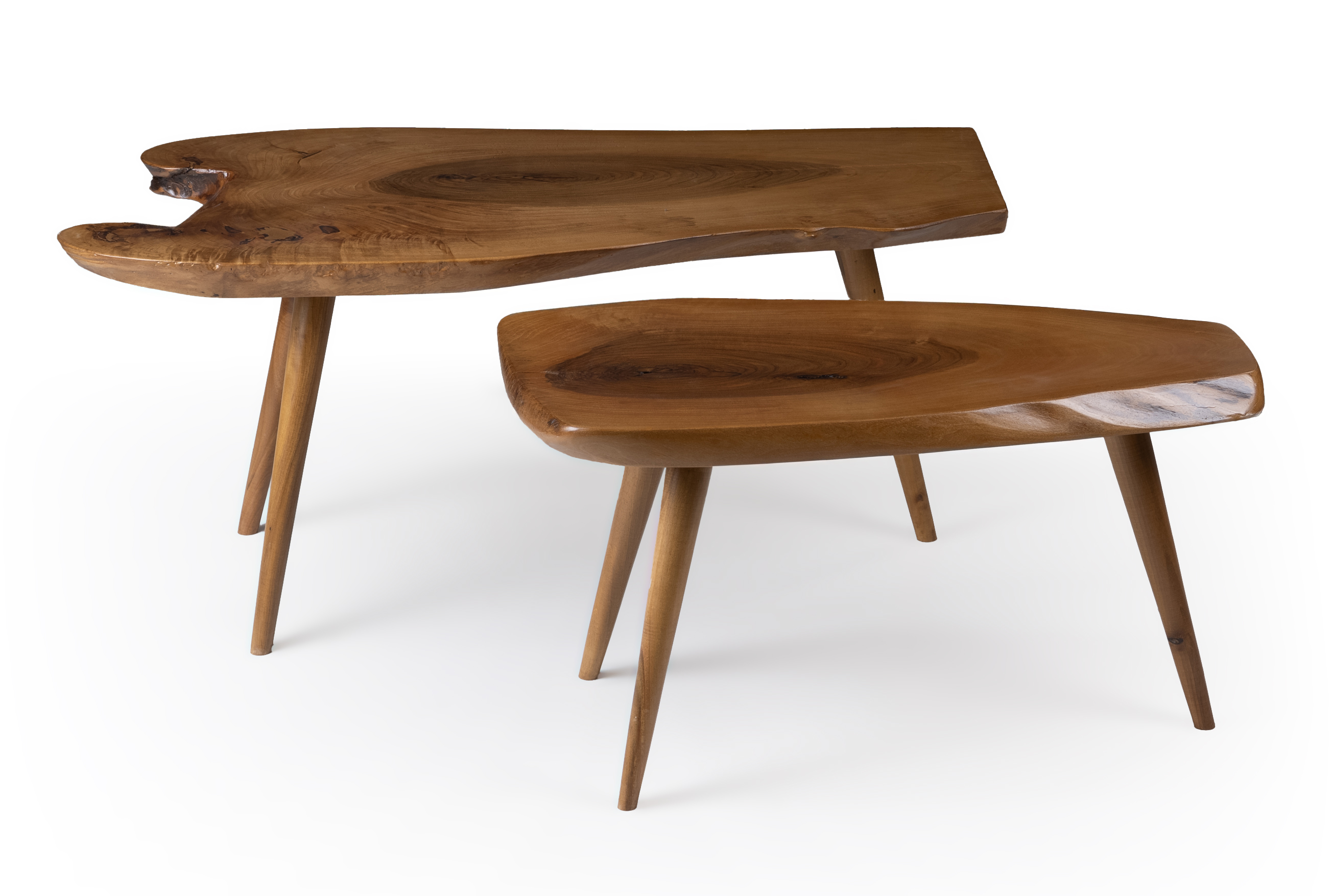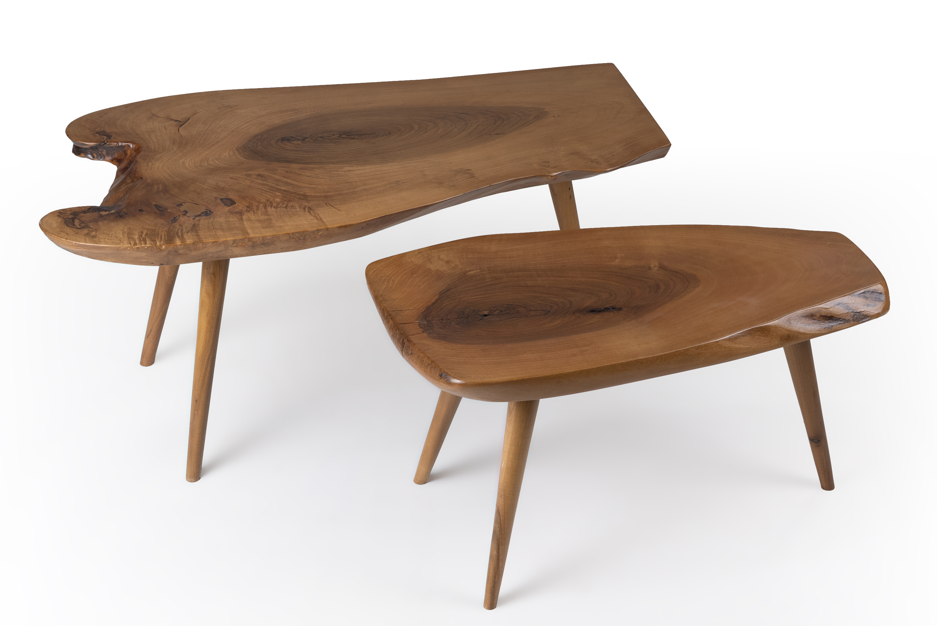 Το Σετ βοηθητικά τραπεζάκια Masif walnut 18 αποτελεί μια μοναδική πρόταση διακόσμησης με φυσικό και αυθεντικό χαρακτήρα. Είναι κατασκευασμένο από καπάκι μασίφ καρυδιάς, με ανάγλυφα νερά και οργανικές καμπύλες που αναδεικνύουν την αυθεντικότητα του ξύλου. Τα τραπεζάκια διαθέτουν ξύλινα πόδια υψηλής αντοχής, προσφέροντας άριστη σταθερότητα και διαχρονική αισθητική.