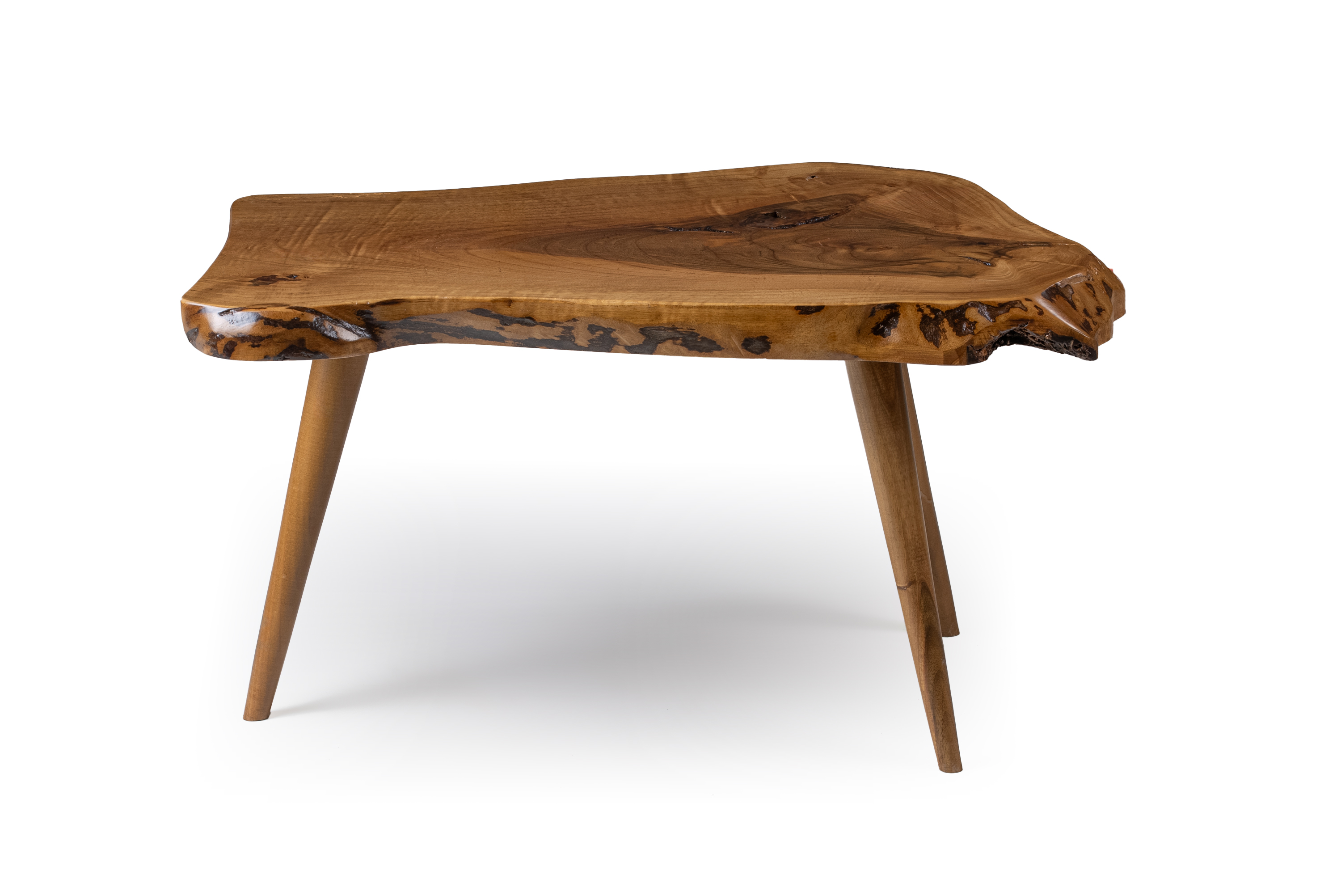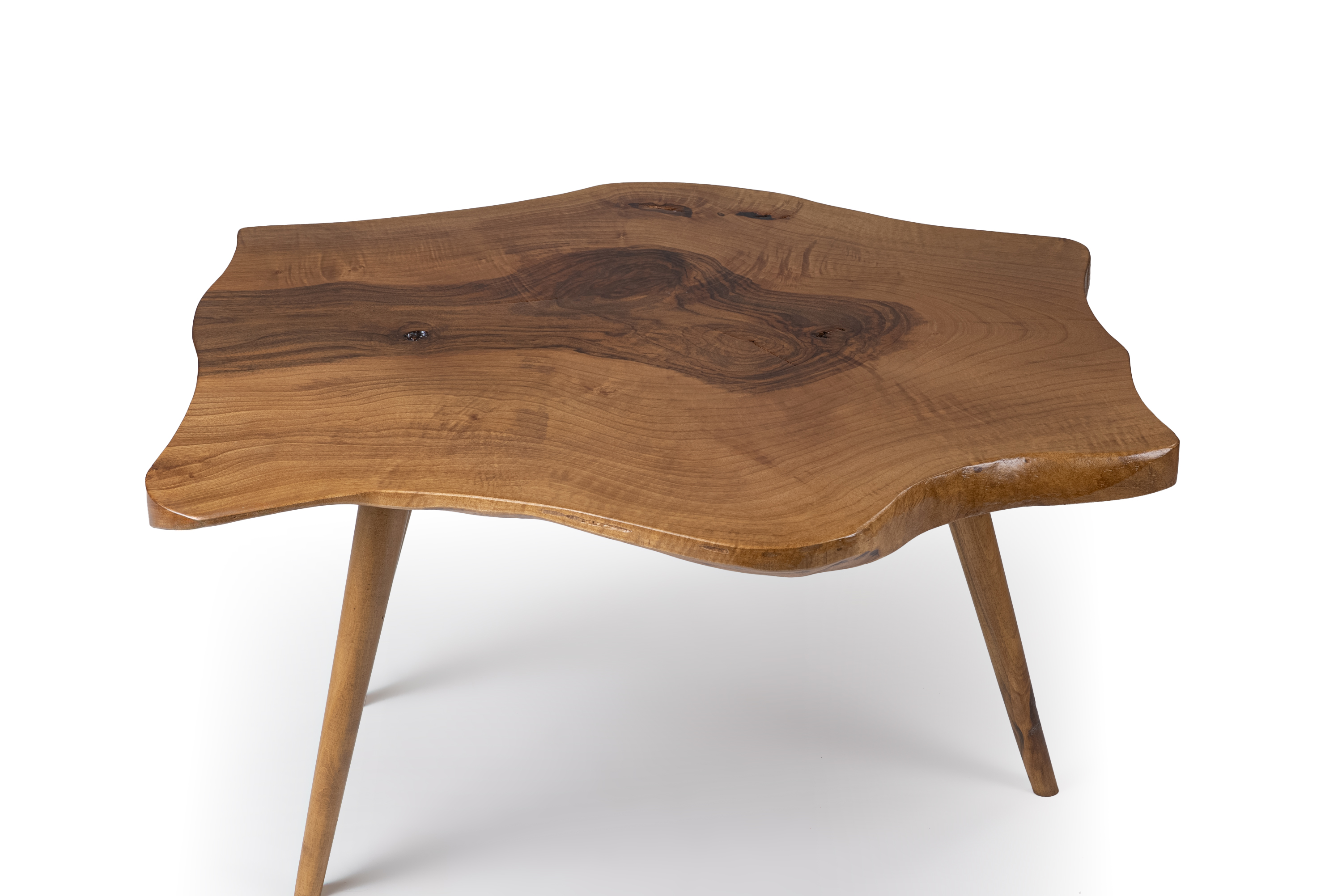 Το Βοηθητικό τραπεζάκι Masif walnut 15 αποτελεί ένα μοναδικό κομμάτι χειροποίητης επιπλοποιίας από φυσικό ξύλο καρυδιάς. Η επιφάνειά του διατηρεί το αυθεντικό οργανικό σχήμα του κορμού, με φυσικά νερά, ρόζους και ιδιαίτερες καμπύλες που το καθιστούν απολύτως μοναδικό. Κάθε τραπεζάκι είναι one-of-a-kind και δεν επαναλαμβάνεται πανομοιότυπα.