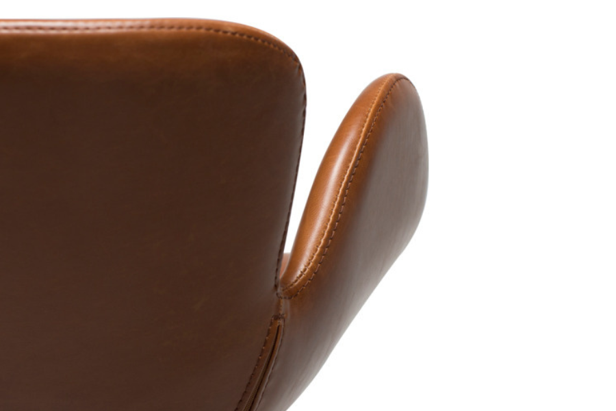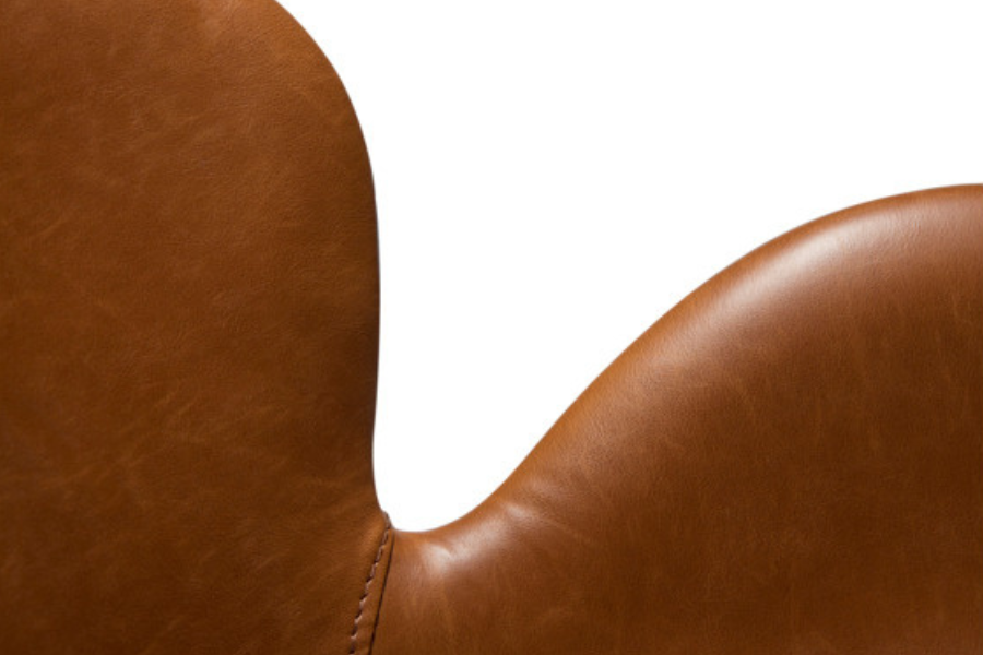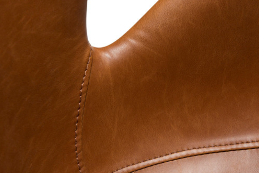 Το κάθισμα είναι επενδυμένο με τεχνόδερμα σε vintage καφε απόχρωση, προσφέροντας ανθεκτικότητα και εύκολη συντήρηση, ενώ παράλληλα διατηρεί την αισθητική του φυσικού δέρματος. Η απαλή υφή και η ποιοτική κατασκευή δημιουργούν μία άνετη εμπειρία καθίσματος.