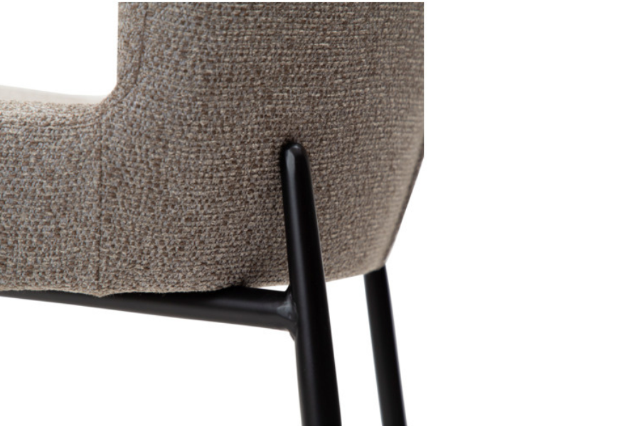 Η επένδυση από bouclé ύφασμα σε pebble grey απόχρωση προσφέρει διακριτική υφή και ουδέτερο χαρακτήρα, επιτρέποντας εύκολη ενσωμάτωση σε κάθε διακόσμηση.