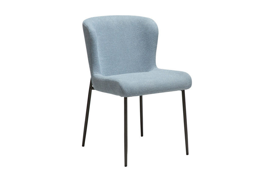 Η καρέκλα τραπεζαρίας GLAM Blue Fog συνδυάζει κομψότητα και ηρεμία, αποτελώντας ιδανική επιλογή για σύγχρονους και φωτεινούς χώρους.