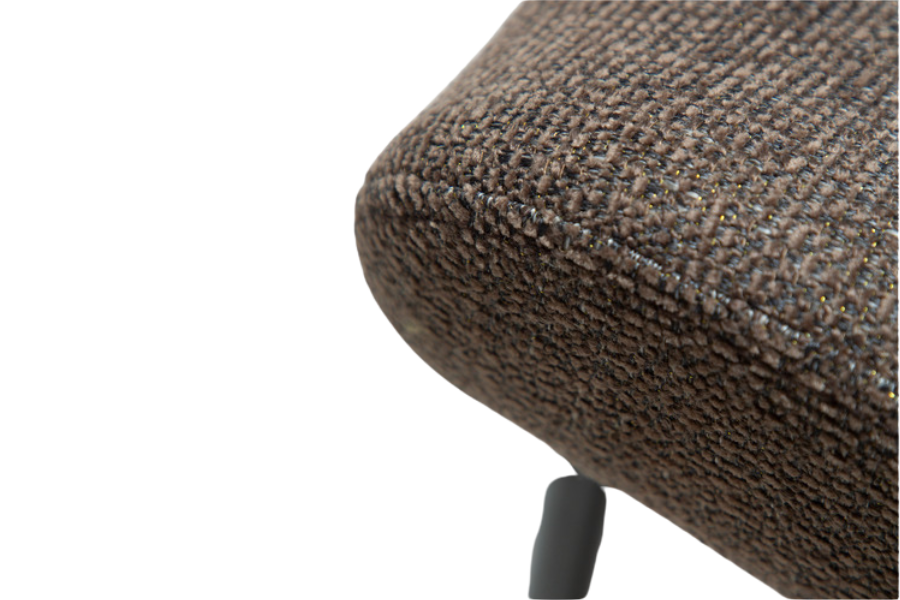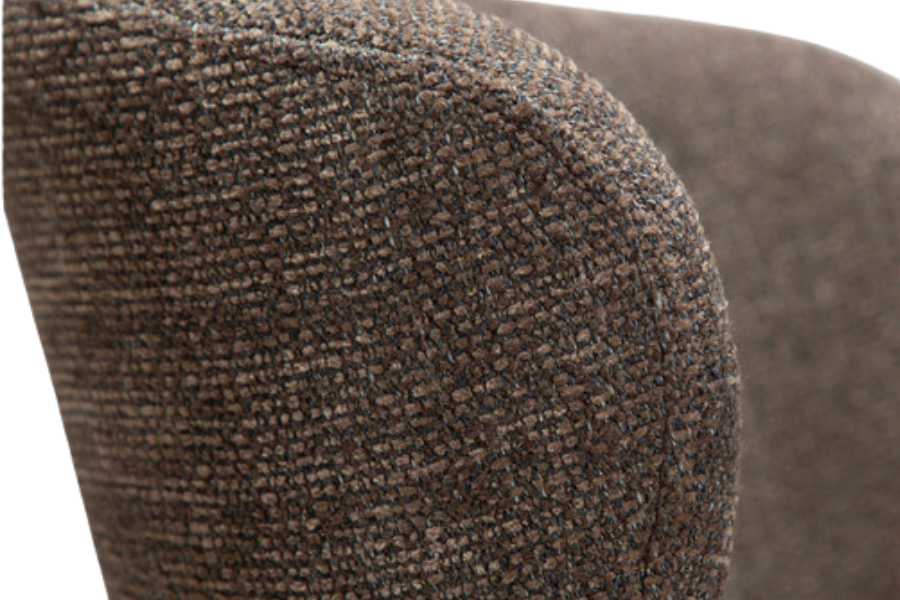 Η επένδυση από bouclé ύφασμα σε καφέ απόχρωση προσφέρει πλούσια υφή και φυσική αισθητική. Το καφέ χρώμα δημιουργεί μία αίσθηση οικειότητας και ισορροπίας, ενώ συνδυάζεται εύκολα με ξύλο, μέταλλο και neutral παλέτες.