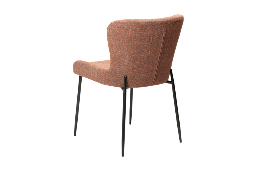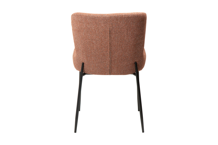 Τα λεπτά, ελαφρώς κωνικά μεταλλικά πόδια σε μαύρο χρώμα προσδίδουν σταθερότητα και κομψότητα, ενώ η χαρακτηριστική προέκτασή τους στην πλάτη ενισχύει τον σύγχρονο και premium σχεδιασμό.