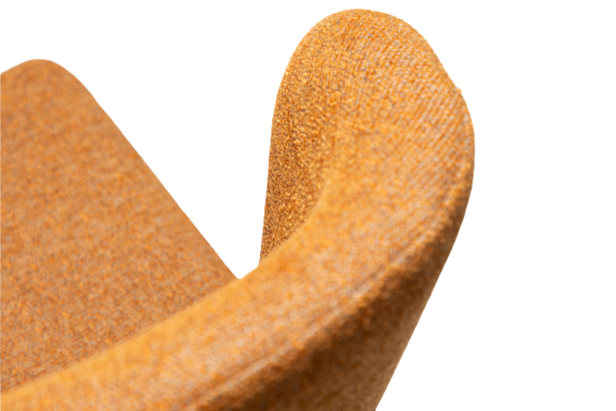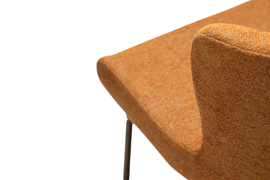 Η επένδυση από bouclé ύφασμα σε pumpkin spice απόχρωση χαρίζει ένταση, χαρακτήρα και μία μοντέρνα, cozy αίσθηση στον χώρο, καθιστώντας την ιδανική επιλογή για interiors που θέλουν να ξεχωρίζουν.