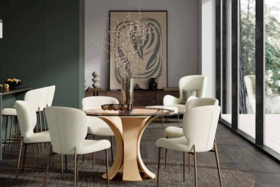 Η χαρακτηριστική πλάτη με διακριτικά “wings” δημιουργεί μία κομψή καμπύλη μορφή που αγκαλιάζει το σώμα και προσφέρει άνεση στο κάθισμα.