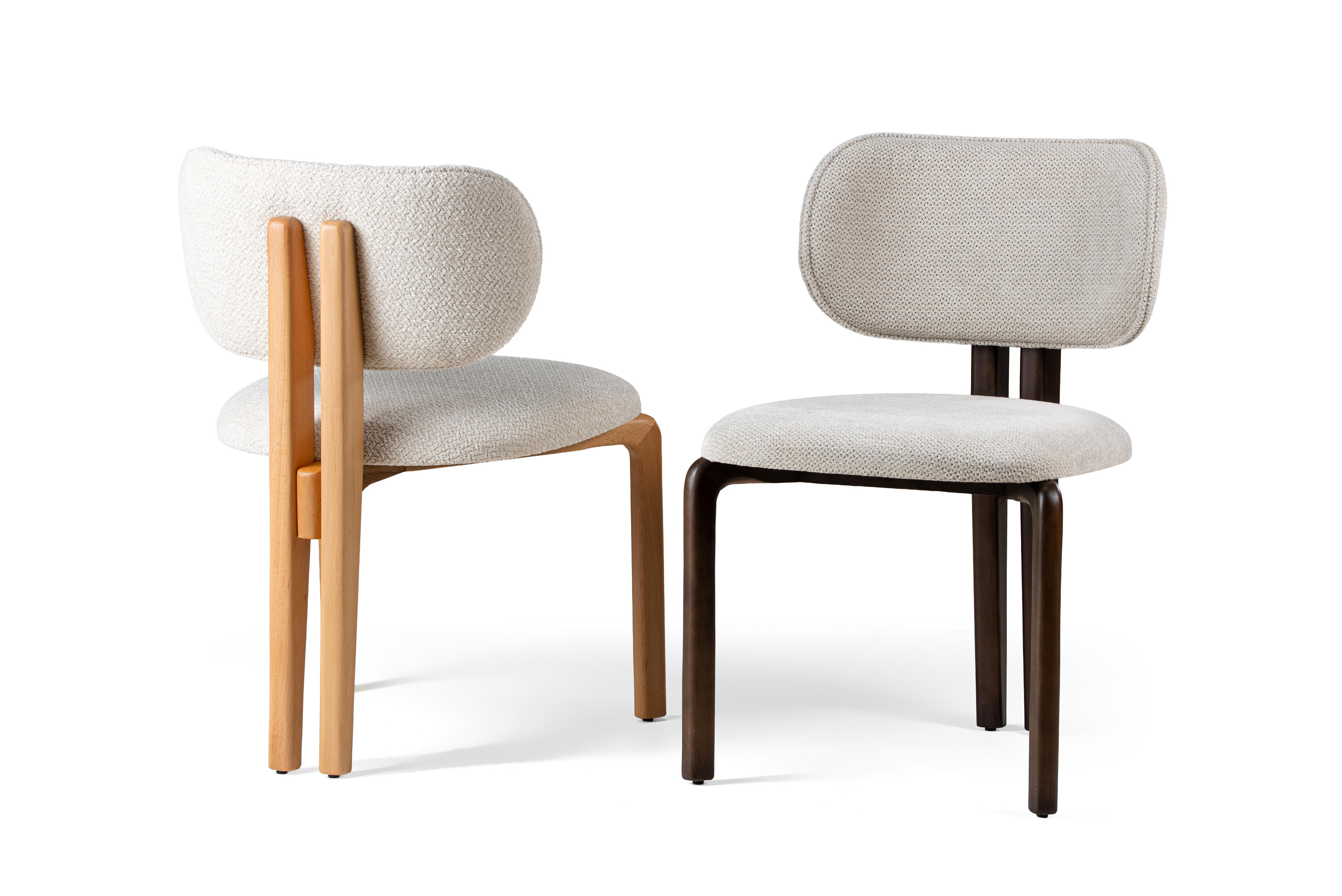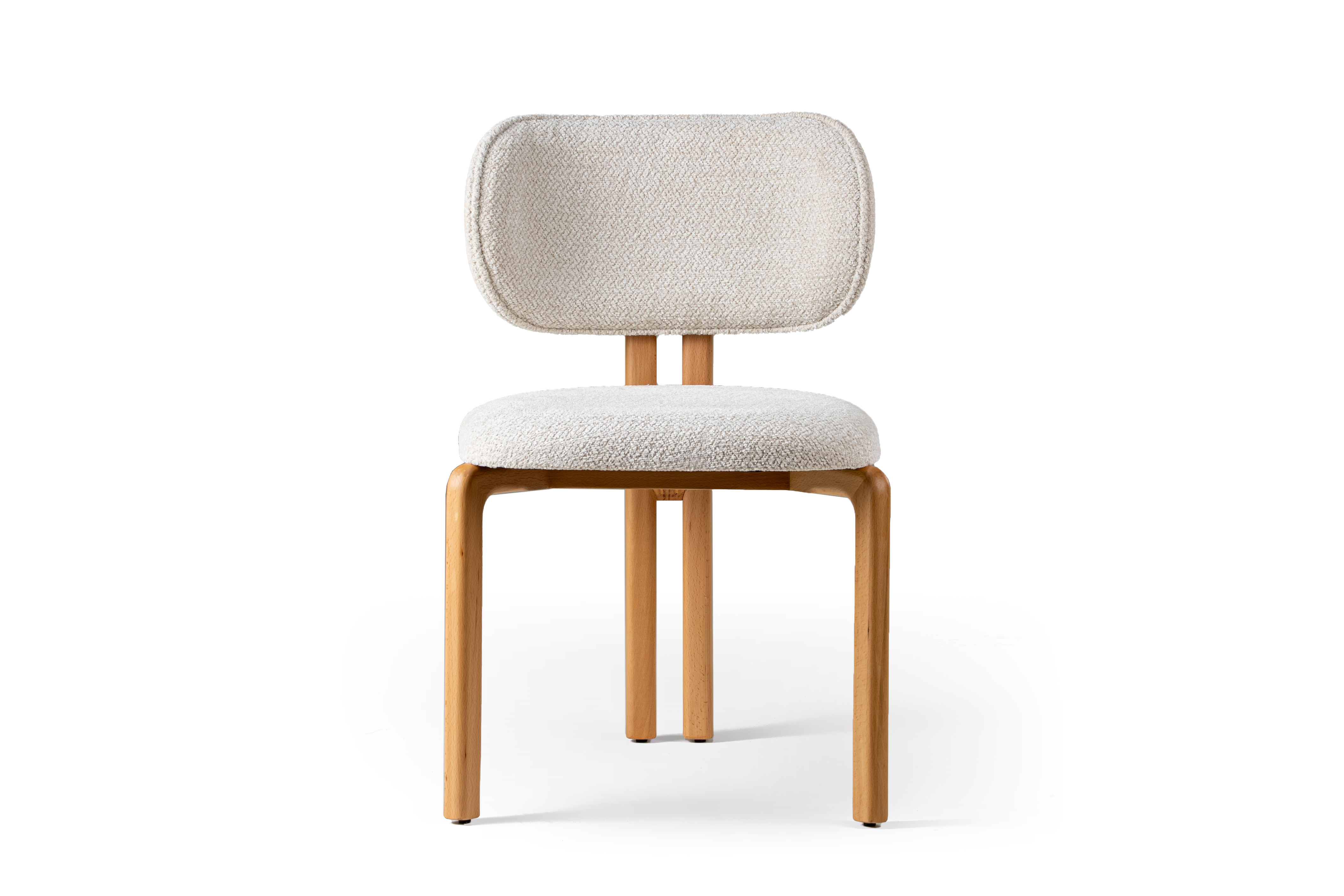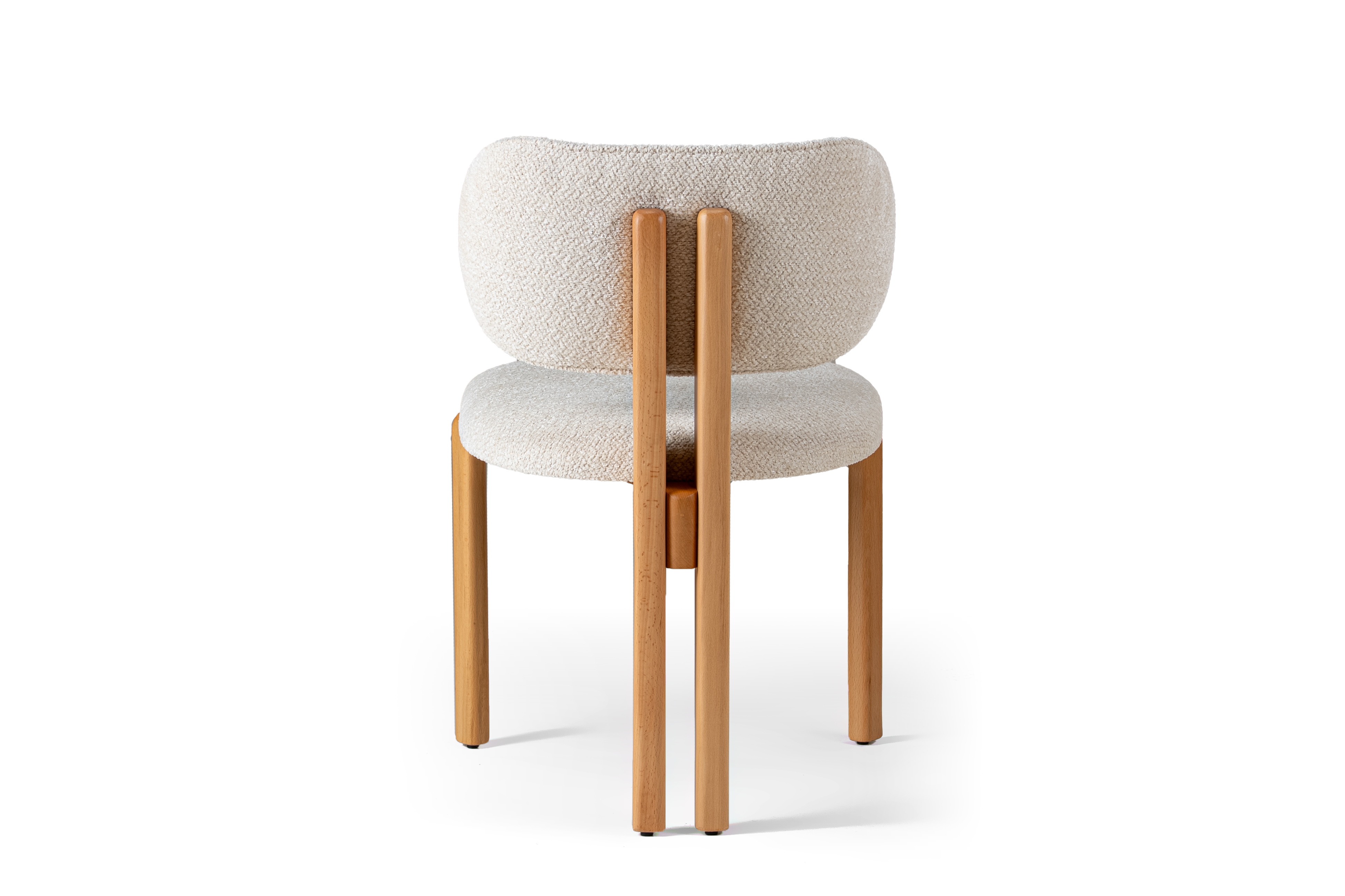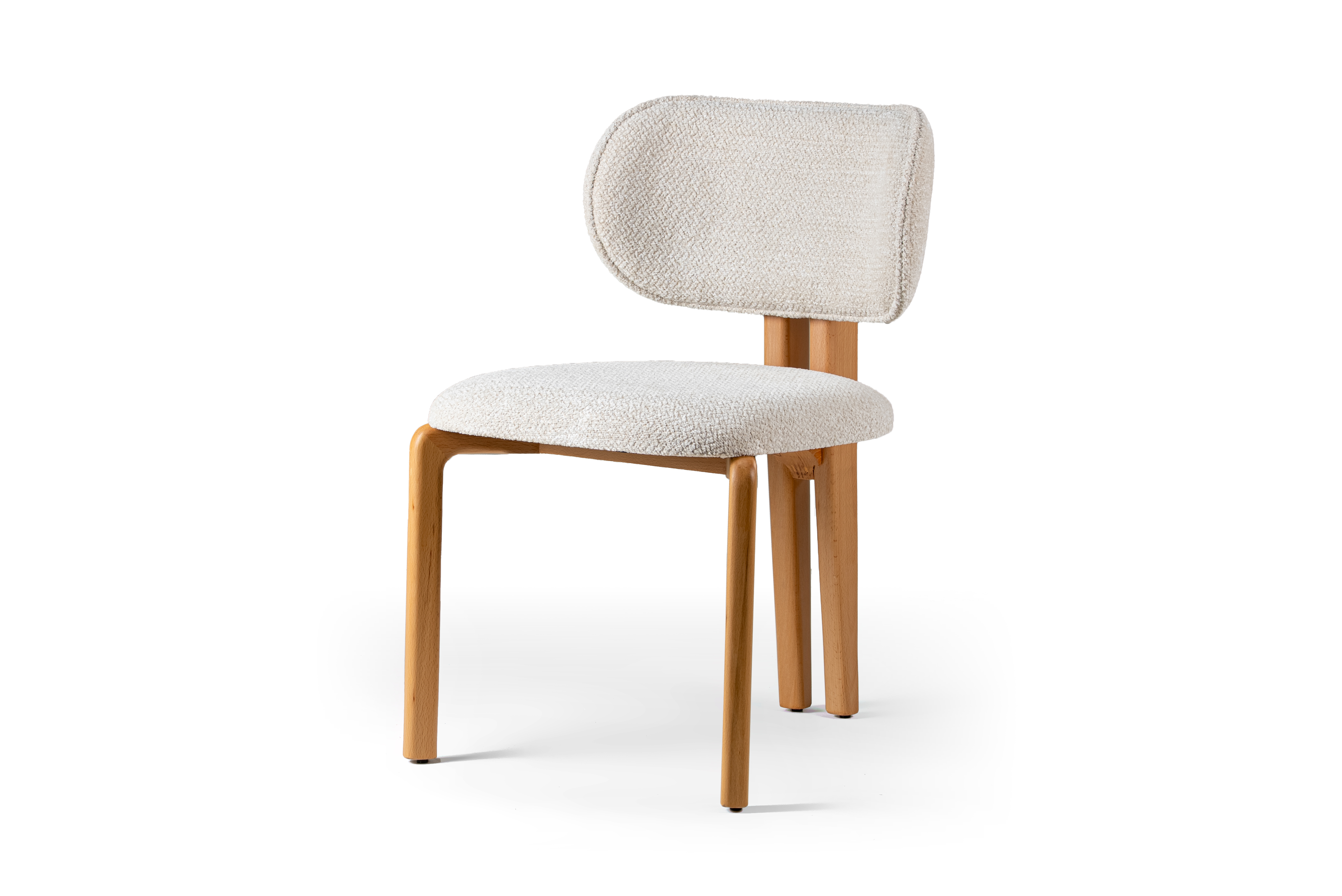 Η καρέκλα τραπεζαρίας Jumbo συνδυάζει κομψότητα και άνεση, ιδανική για σύγχρονους και minimal εσωτερικούς χώρους. Κατασκευασμένη από μασίφ ξύλο οξιάς με φινίρισμα σε καρυδί ή δρύινη απόχρωση, προσδίδει ζεστασιά και ανθεκτικότητα στο χώρο σας. Το κάθισμα και η πλάτη της επενδύονται με λευκό μπουκλέ ύφασμα, που χαρίζει μια αίσθηση απαλότητας και στυλ, ενώ αγκαλιάζει άνετα το σώμα για μεγαλύτερη στήριξη.