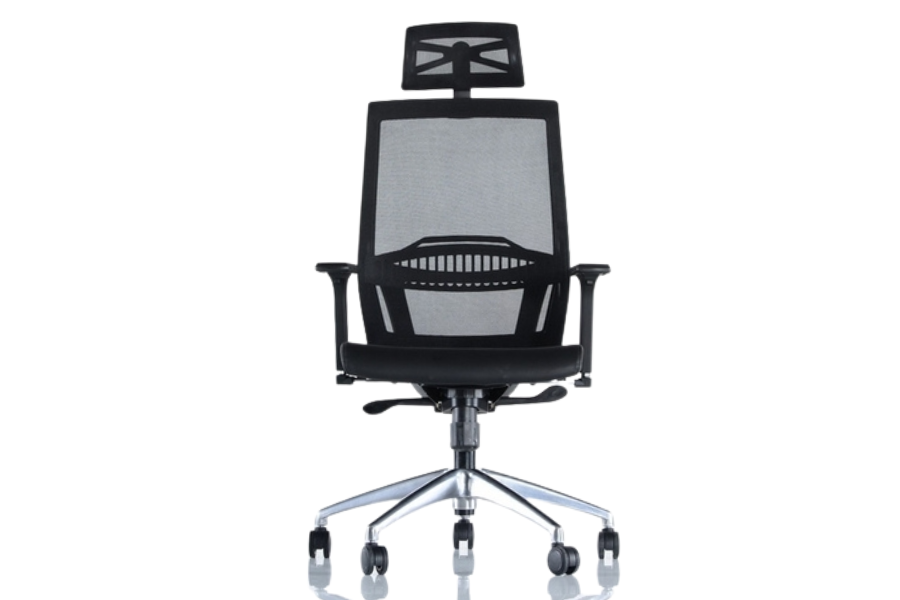 Διευθυντικό κάθισμα mesh ψηλής πλάτης με ρυθμιζόμενο προσκέφαλο και βάση Inox.   ...περισσότερα