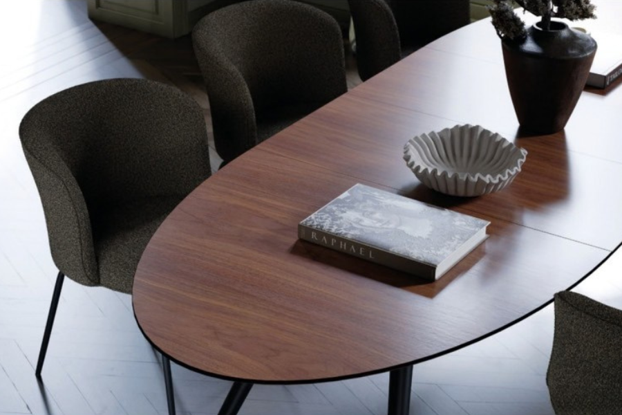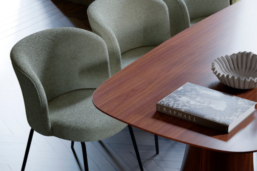 Η επένδυση από bouclé ύφασμα σε απόχρωση Major Brown χαρίζει φυσική ζεστασιά και διαχρονική κομψότητα στον χώρο. Η ιδιαίτερη υφή του υφάσματος προσθέτει βάθος και χαρακτήρα στο design, δημιουργώντας ένα εκλεπτυσμένο αποτέλεσμα που ταιριάζει εύκολα σε σύγχρονες αλλά και κλασικές τραπεζαρίες.