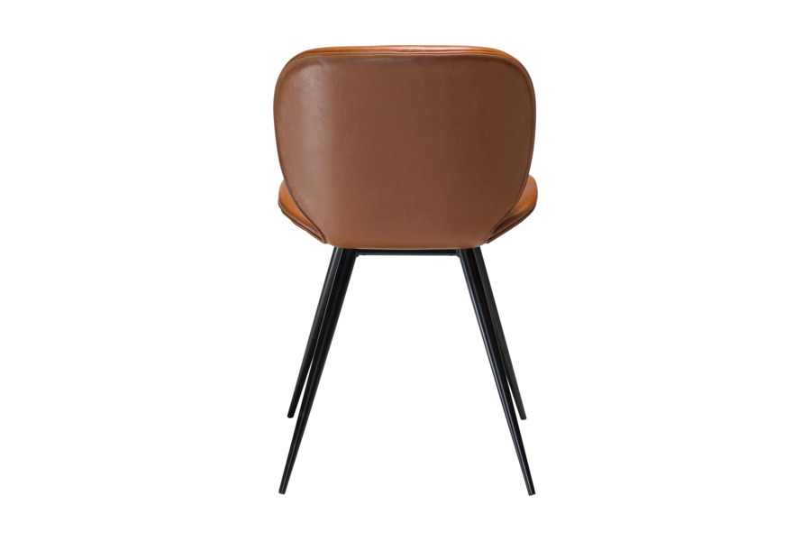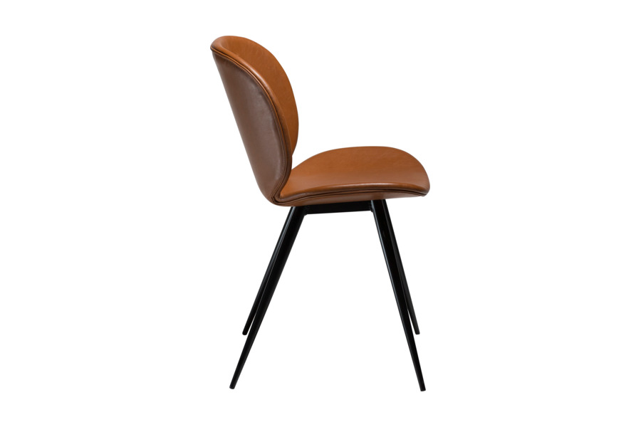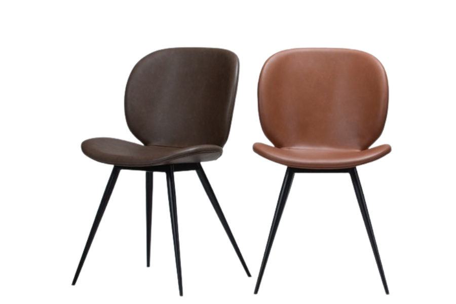 Η απαλή υφή του δέρματος και η ελαφρώς παλαιωμένη αισθητική του προσδίδουν μοναδικό στυλ, καθιστώντας την καρέκλα ιδανική για σύγχρονες και minimal τραπεζαρίες. Τα λεπτά μεταλλικά πόδια σε κωνικό σχήμα ενισχύουν τη σταθερότητα και ολοκληρώνουν το design με μια διακριτική industrial πινελιά.