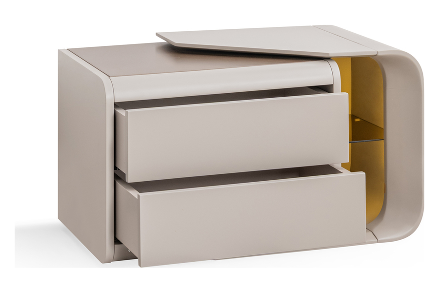 Το κομοδίνο Zen αποτελεί μια κομψή και λειτουργική επιλογή για σύγχρονα υπνοδωμάτια, συνδυάζοντας minimal αισθητική με πρακτικότητα. Οι απαλές καμπύλες γραμμές και ο μοντέρνος σχεδιασμός του προσδίδουν διακριτική πολυτέλεια στον χώρο.