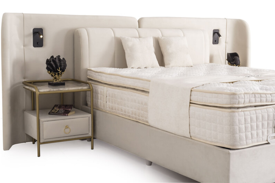 Το ντυμένο κρεβάτι Lizbon συνδυάζει μοντέρνα αισθητική, πολυτέλεια και έξυπνη λειτουργικότητα. Το επιβλητικό κεφαλάρι με ενσωματωμένο φωτισμό LED και θύρα USB προσφέρει άνεση και πρακτικότητα, ιδανική για σύγχρονα υπνοδωμάτια. Η επένδυση από υψηλής ποιότητας ύφασμα χαρίζει απαλή υφή και αντοχή στη χρήση, ενώ η στιβαρή κατασκευή εξασφαλίζει μακροχρόνια ανθεκτικότητα.