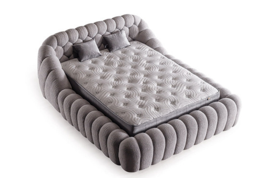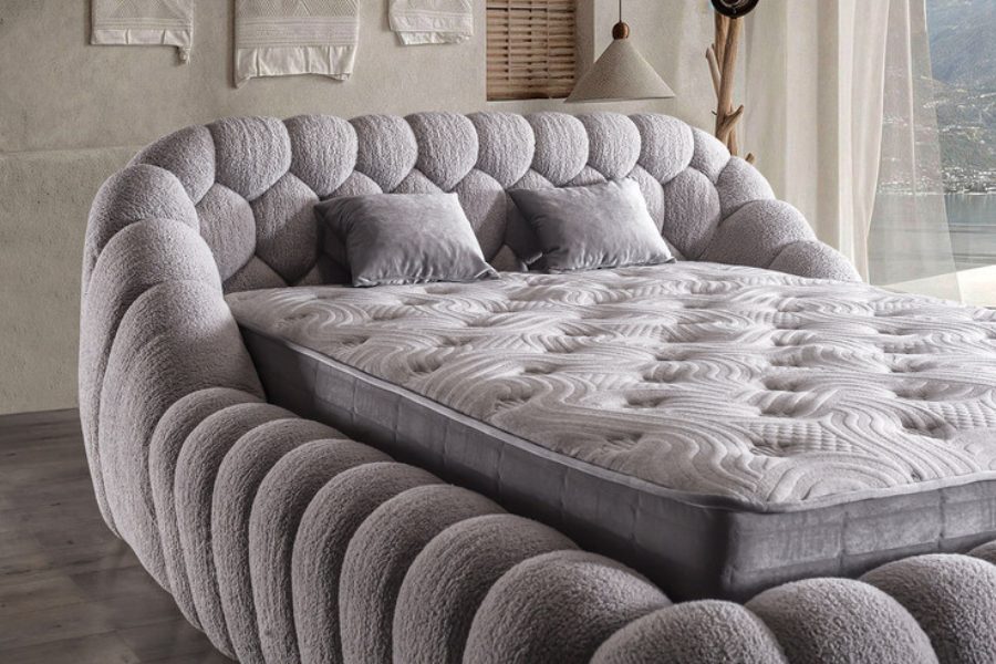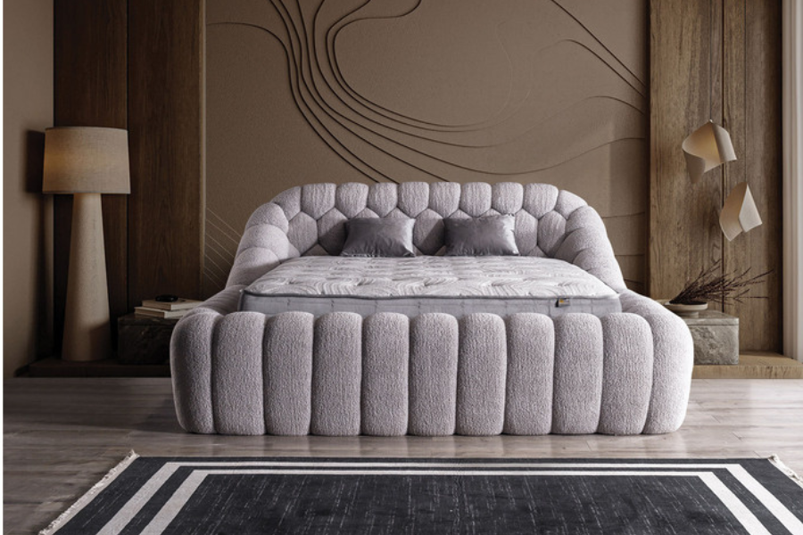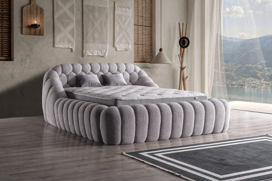 Το ντυμένο κρεβάτι Graz εντυπωσιάζει με τον ιδιαίτερο καμπύλο σχεδιασμό του και τον έντονο χαρακτήρα που προσδίδει στον χώρο. Οι στρογγυλεμένες φόρμες του πλαισίου δημιουργούν ένα μοναδικό αισθητικό αποτέλεσμα, προσφέροντας αίσθηση πολυτέλειας και ζεστασιάς στο υπνοδωμάτιο.