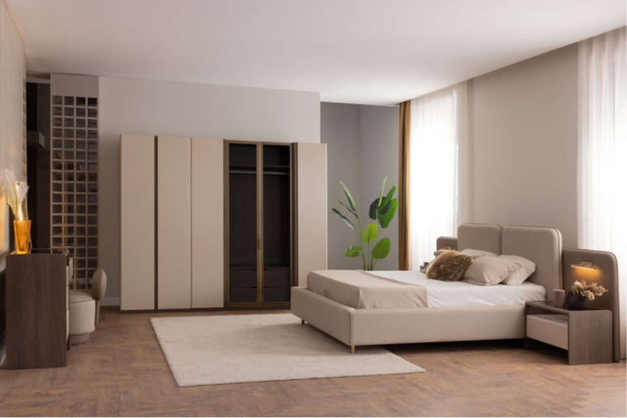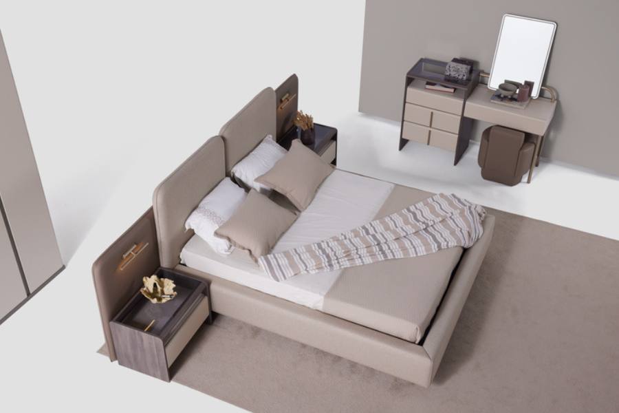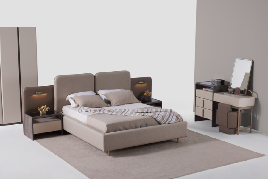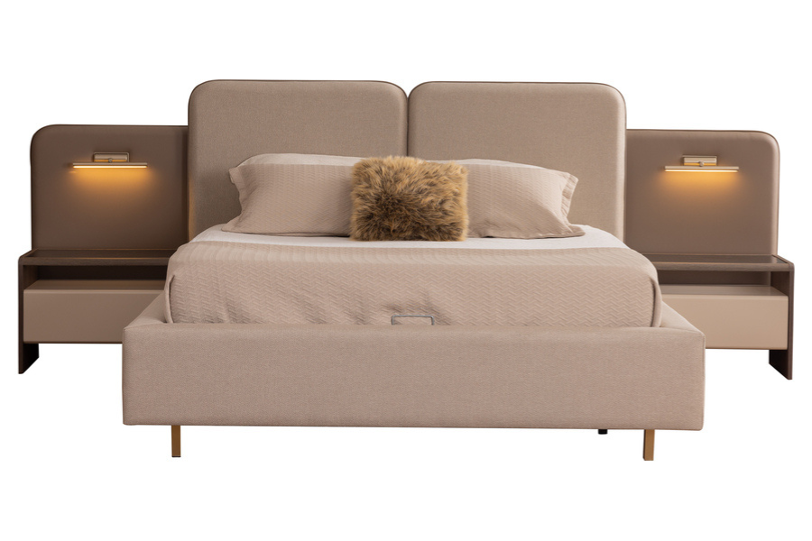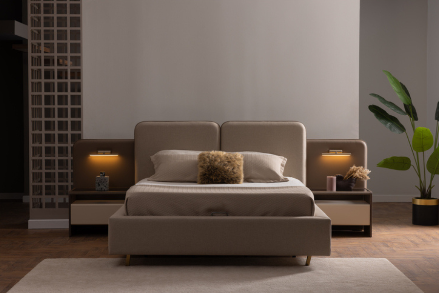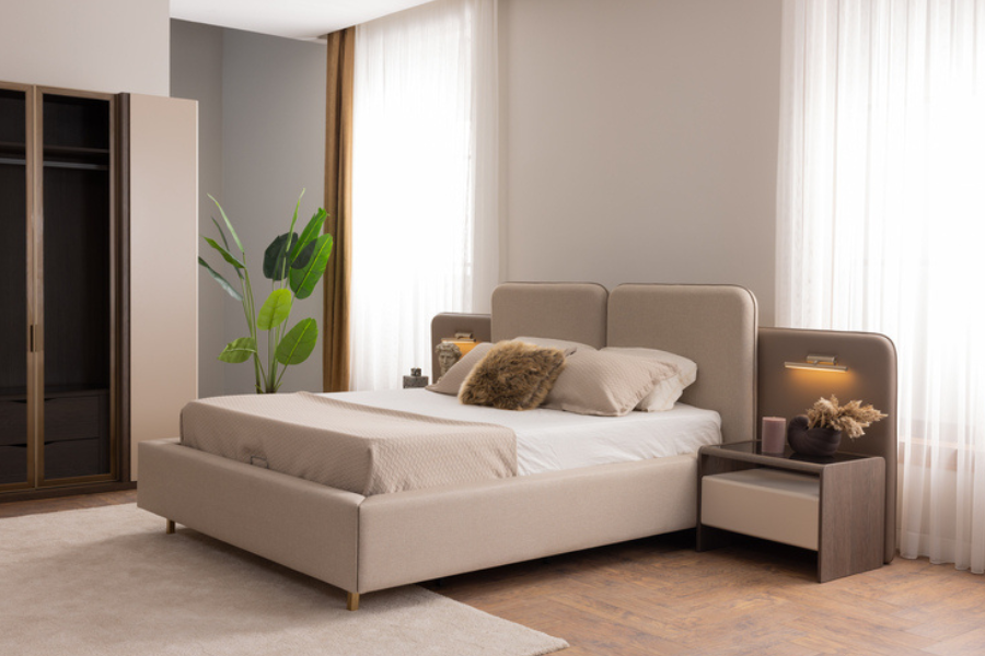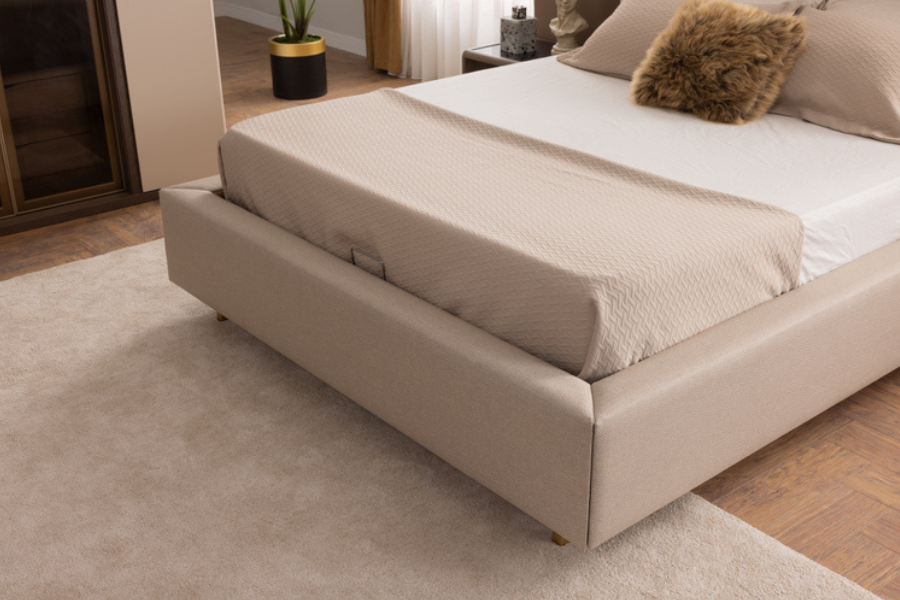 Ο μοντέρνος σχεδιασμός του κρεβατιού επιτρέπει εύκολη ένταξη σε διαφορετικά στυλ διακόσμησης, από minimal έως contemporary χώρους. Η υφασμάτινη επένδυση προσθέτει μια αίσθηση πολυτέλειας και ζεστασιάς, ενώ το κομψό design του αναβαθμίζει αισθητικά κάθε υπνοδωμάτιο.