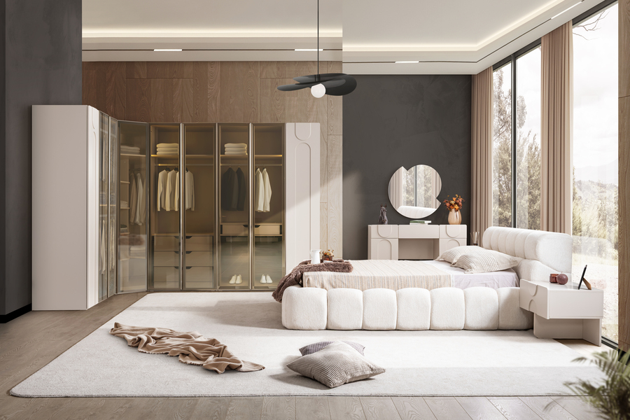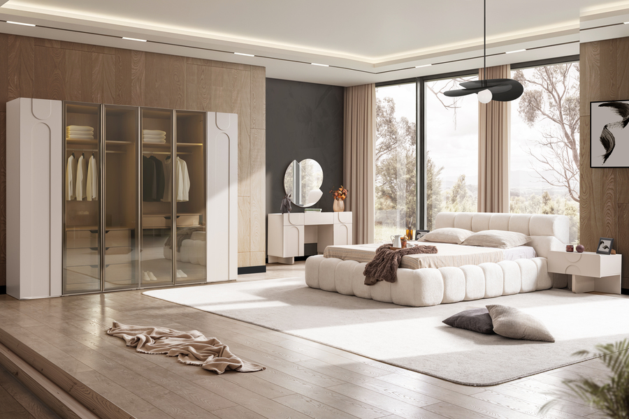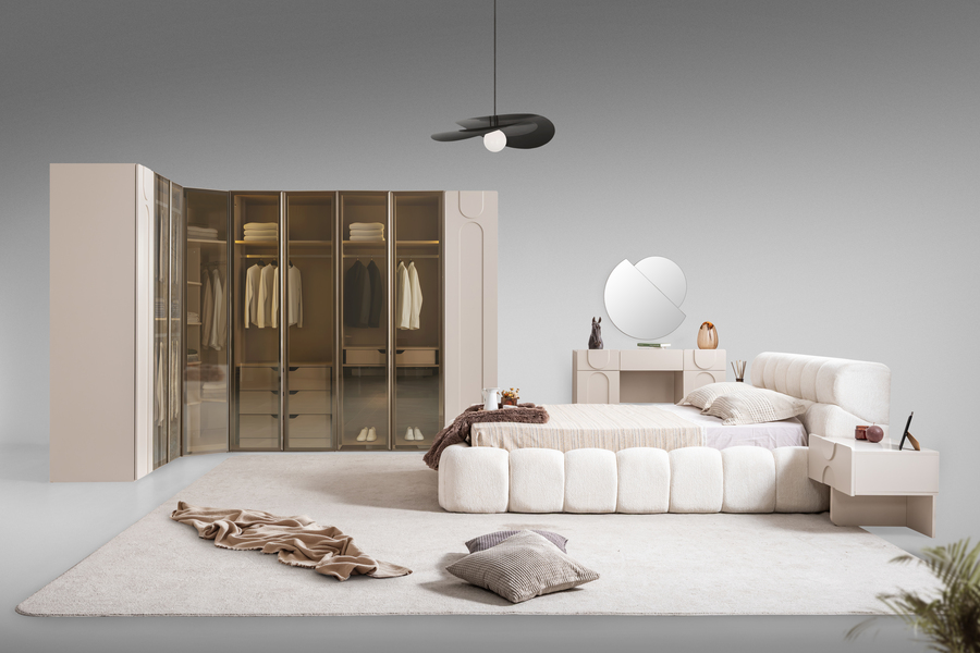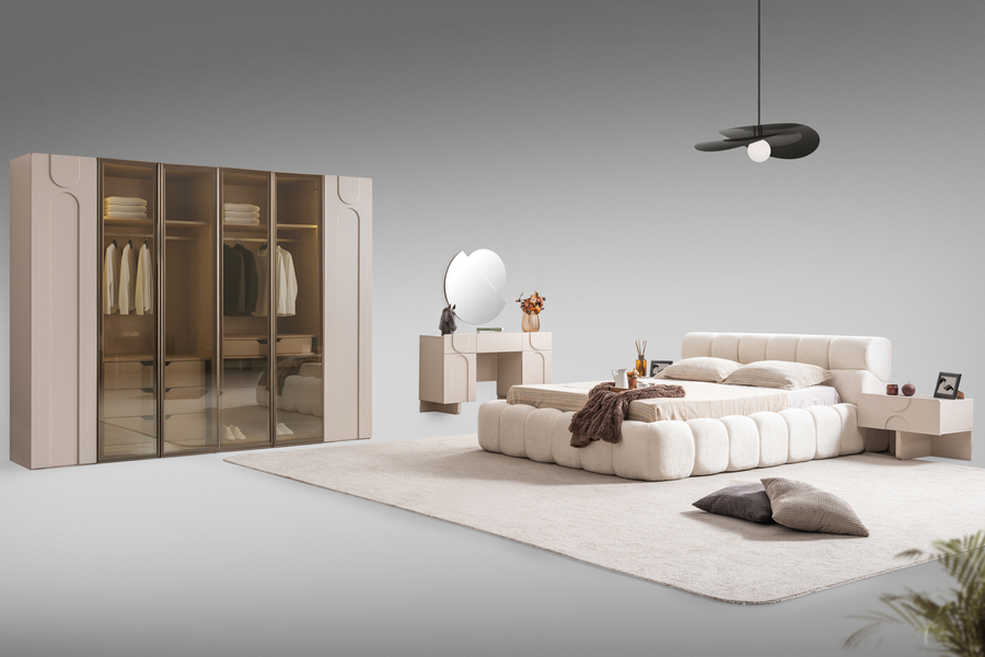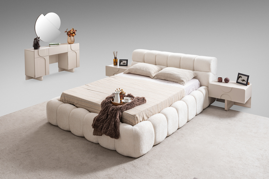 Το σετ κρεβατοκάμαρας Puffy ξεχωρίζει για τον ιδιαίτερο σύγχρονο σχεδιασμό του και την απαλή αισθητική που δημιουργεί στον χώρο του υπνοδωματίου. Οι καμπύλες γραμμές, οι μαλακές υφές και οι ισορροπημένες αναλογίες συνθέτουν ένα σύνολο επίπλων που προσφέρει άνεση, λειτουργικότητα και σύγχρονη κομψότητα.