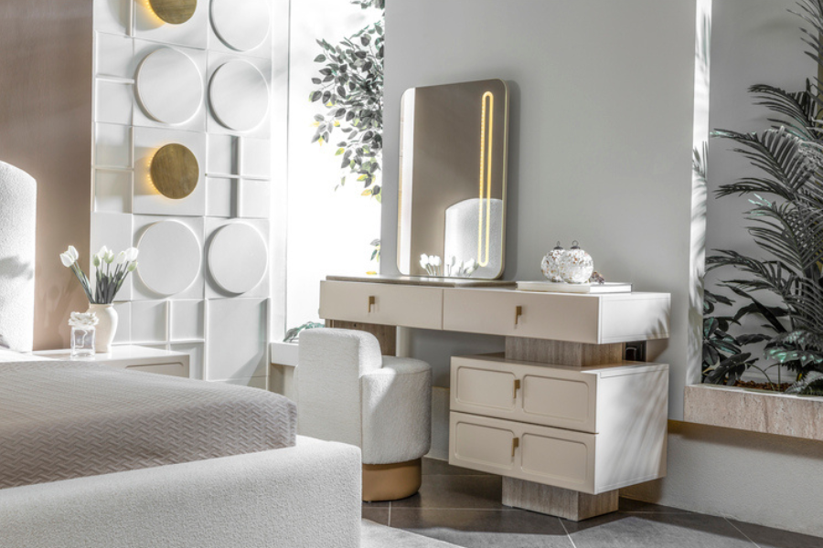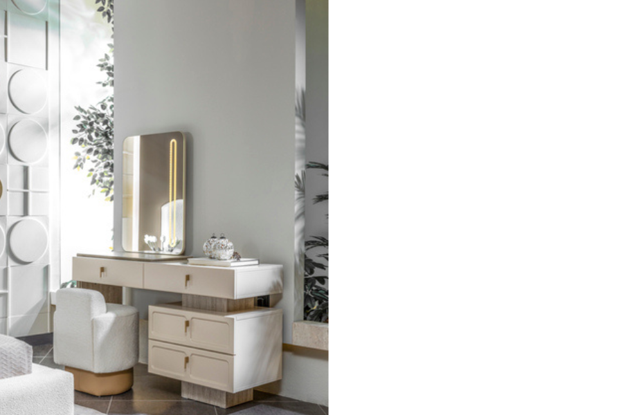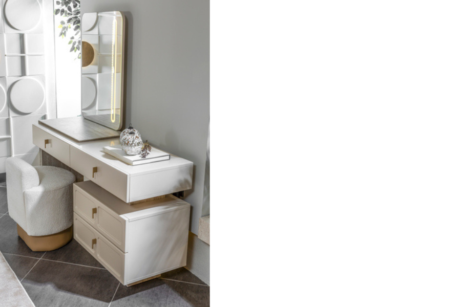 Η Dante συρταριέρα μπορεί να λειτουργήσει τόσο ως έπιπλο αποθήκευσης όσο και ως έπιπλο καλλωπισμού (vanity), αποτελώντας μια ιδανική λύση για μοντέρνα υπνοδωμάτια.
