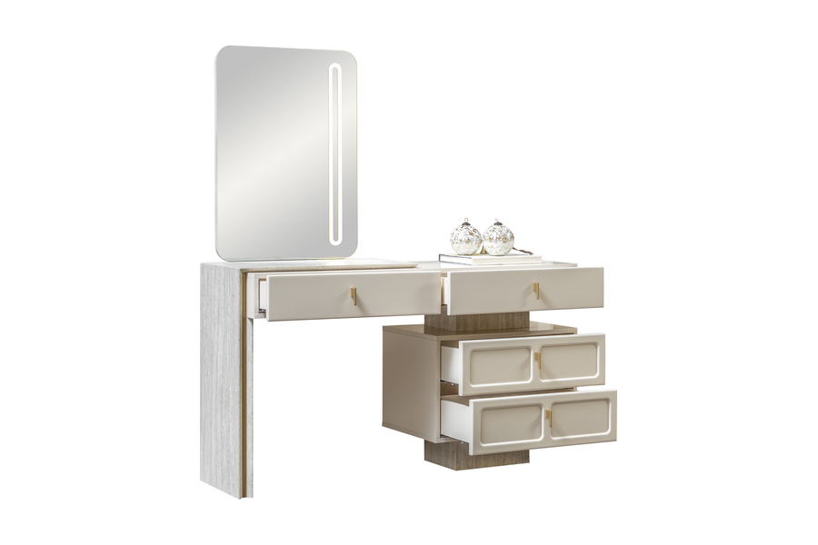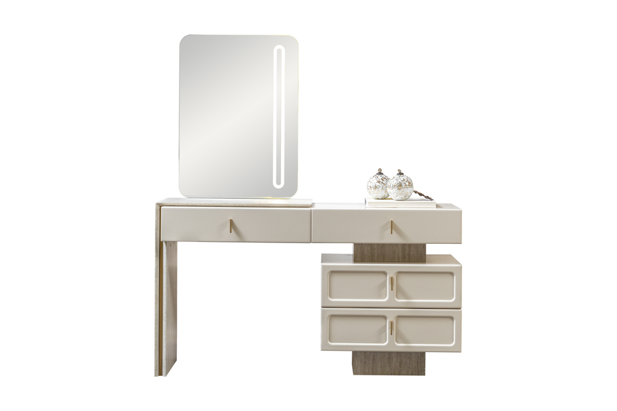 Διαθέτει πρακτικά συρτάρια που προσφέρουν άνετο αποθηκευτικό χώρο για προσωπικά αντικείμενα, αξεσουάρ και καθημερινά είδη. Η ευρύχωρη επιφάνειά της είναι ιδανική για τοποθέτηση καθρέφτη, διακοσμητικών αντικειμένων ή προϊόντων καλλωπισμού.