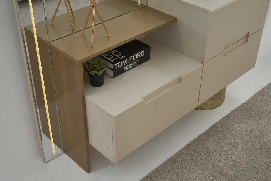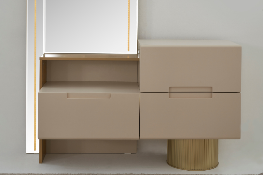 Η συρταριέρα Icon αποτελεί μια κομψή και πρακτική επιλογή για σύγχρονα υπνοδωμάτια. Ο σχεδιασμός της χαρακτηρίζεται από καθαρές γραμμές, minimal αισθητική και διακριτικές μεταλλικές λεπτομέρειες που προσθέτουν κομψότητα στον χώρο.