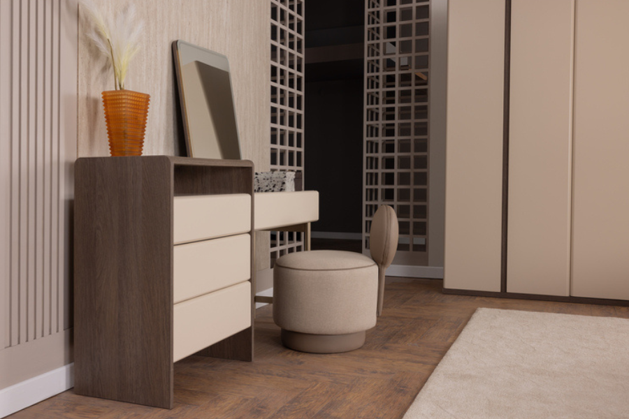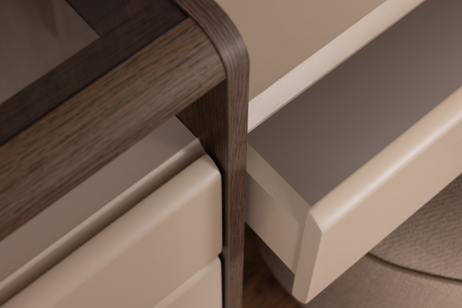 Η Rosita συρταριέρα μπορεί να χρησιμοποιηθεί τόσο ως έπιπλο αποθήκευσης όσο και ως έπιπλο καλλωπισμού (vanity), ολοκληρώνοντας ιδανικά τη σύνθεση της κρεβατοκάμαρας Rosita.