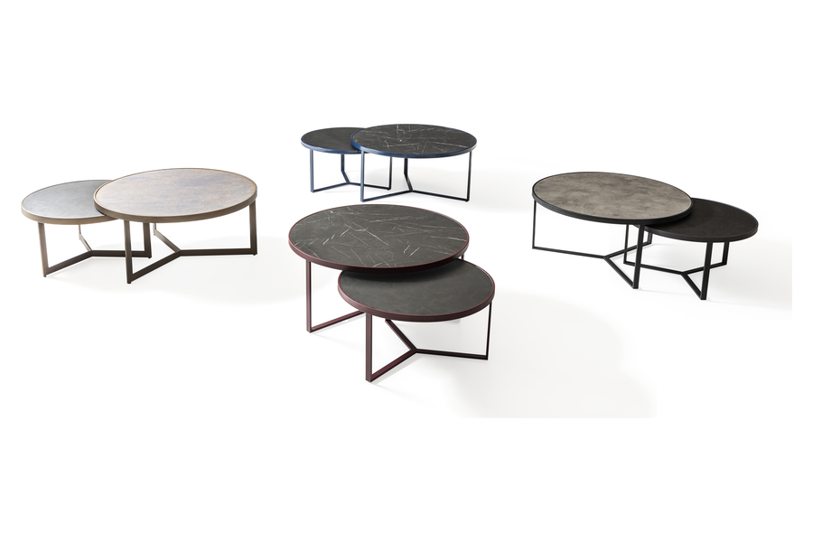 Οι διαστάσεις των τραπεζιών είναι Ø70x36h cm (μικρό) και Ø90x42h cm (μεγάλο), ιδανικές για μοντέρνους και minimal χώρους.