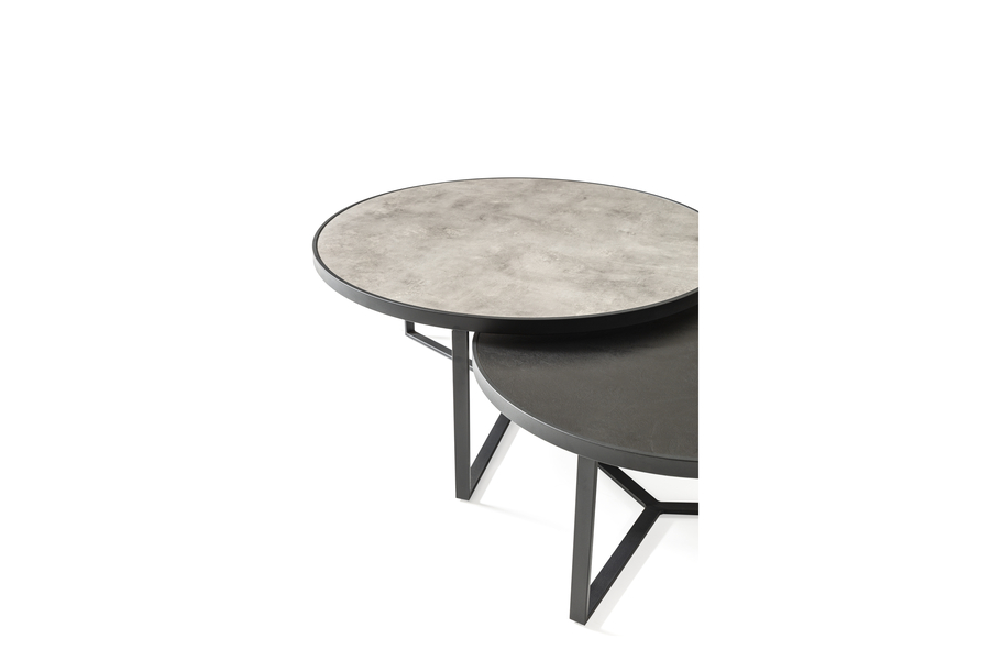 Σετ μοντέρνων τραπεζιών σαλονιού με επιφάνειες HPL υψηλής αντοχής σε Retro Silver και Black Beton.   ...περισσότερα