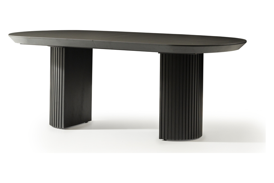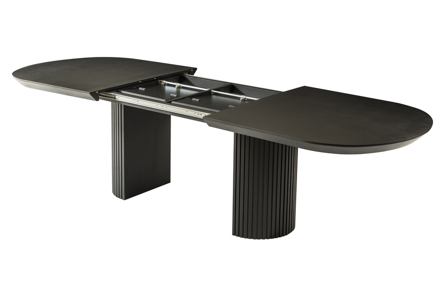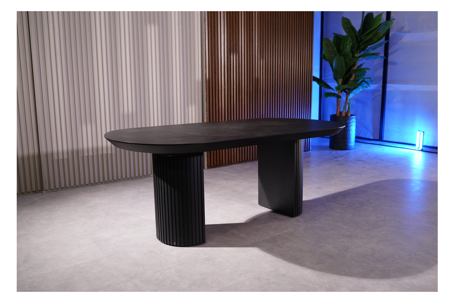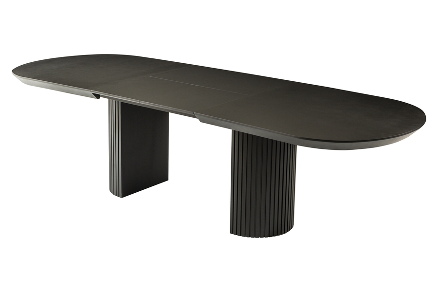 Το τραπέζι τραπεζαρίας Tempo Black Beton συνδυάζει τη μοντέρνα αισθητική με την πρακτικότητα και την ανθεκτικότητα. Η επιφάνειά του είναι κατασκευασμένη από HPL (High Pressure Laminate) σε απόχρωση Black Beton, προσφέροντας την υφή του μπετόν με κομψό ματ φινίρισμα και εξαιρετική αντοχή στη χρήση. Η εντυπωσιακή του βάση με κατακόρυφες νευρώσεις σε μαύρο χρώμα δημιουργεί έναν αρχιτεκτονικό ρυθμό που προσδίδει δυναμισμό και σταθερότητα στη σύνθεση. Ο μηχανισμός προέκτασης επιτρέπει την εύκολη επέκταση της επιφάνειας, κάνοντάς το ιδανικό για μεγαλύτερες παρέες ή οικογενειακά γεύματα. Οι διαστάσεις του είναι 206x103x78 cm σε κλειστή μορφή και φτάνει τα 286x103x78 cm με προέκταση, προσφέροντας άνεση και ευελιξία. Το Tempo Black Beton είναι ένα τραπέζι που αποπνέει μοντέρνο industrial χαρακτήρα με πολυτελείς λεπτομέρειες και κατασκευή υψηλής ποιότητας. Διαθέσιμο σε ποικιλία αποχρώσεων επιφάνειας.
