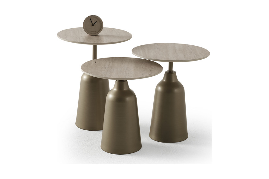 Η διαφορετική στάθμη ύψους των τραπεζιών επιτρέπει ευέλικτες συνθέσεις στον χώρο, καθιστώντας το σετ ιδανικό για σύγχρονα σαλόνια, καθιστικά και χώρους φιλοξενίας. Ένα design statement που συνδυάζει λειτουργικότητα και υψηλή αισθητική.