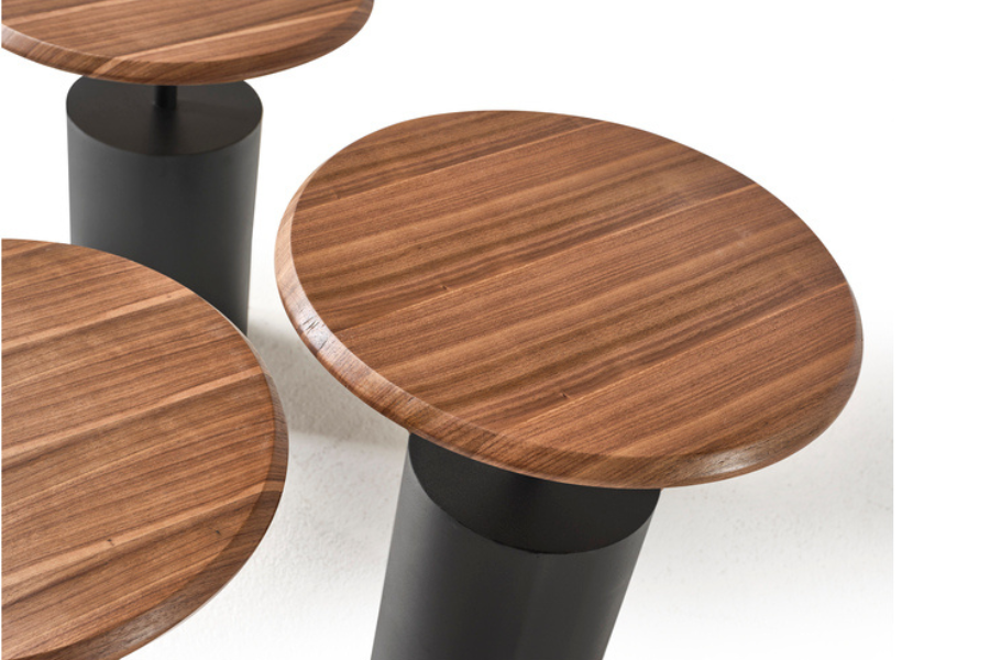Το σετ βοηθητικών τραπεζιών σαλονιού Walnut No 589 συνδυάζει τη φυσική ζεστασιά του ξύλου με τον μοντέρνο χαρακτήρα του μετάλλου. Οι στρογγυλές επιφάνειες σε απόχρωση walnut προσδίδουν κομψότητα, ενώ οι κυλινδρικές μαύρες βάσεις εξασφαλίζουν σταθερότητα και αντοχή.