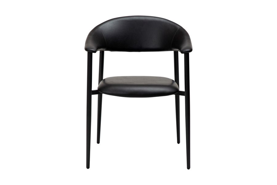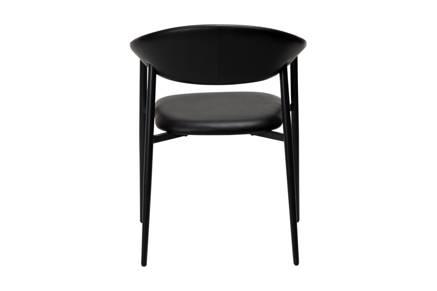 Η βάση από μαύρα μεταλλικά πόδια ενισχύει τη σταθερότητα και συμπληρώνει αρμονικά το minimal design της καρέκλας. Ο λεπτός σκελετός δημιουργεί μία ελαφριά οπτικά κατασκευή, χωρίς να υστερεί σε αντοχή.