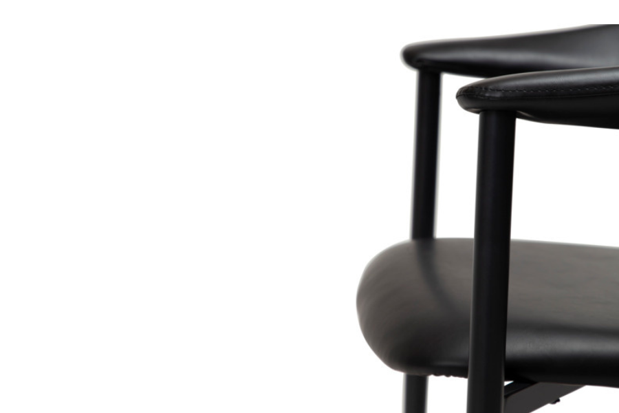 Η επένδυση από τεχνητό δέρμα σε απόχρωση vintage black προσδίδει διαχρονικό χαρακτήρα και industrial αισθητική, ενώ παράλληλα είναι εύκολη στη συντήρηση. Το κάθισμα είναι αναπαυτικό και κατάλληλο για καθημερινή χρήση, τόσο σε οικιακούς όσο και σε επαγγελματικούς χώρους.