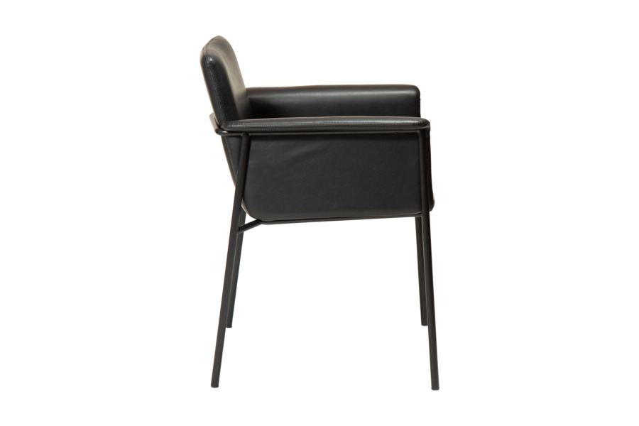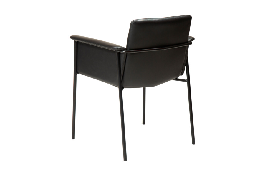 Η καρεκλοπολυθρόνα τραπεζαρίας Vale Vintage Black συνδυάζει άνεση και διαχρονική κομψότητα, αποτελώντας ιδανική επιλογή για σύγχρονες και industrial τραπεζαρίες. Ο σχεδιασμός της με τα ενσωματωμένα μπράτσα και τη φαρδιά πλάτη προσφέρει υψηλό επίπεδο άνεσης, ιδανικό για πολύωρη χρήση στο τραπέζι.