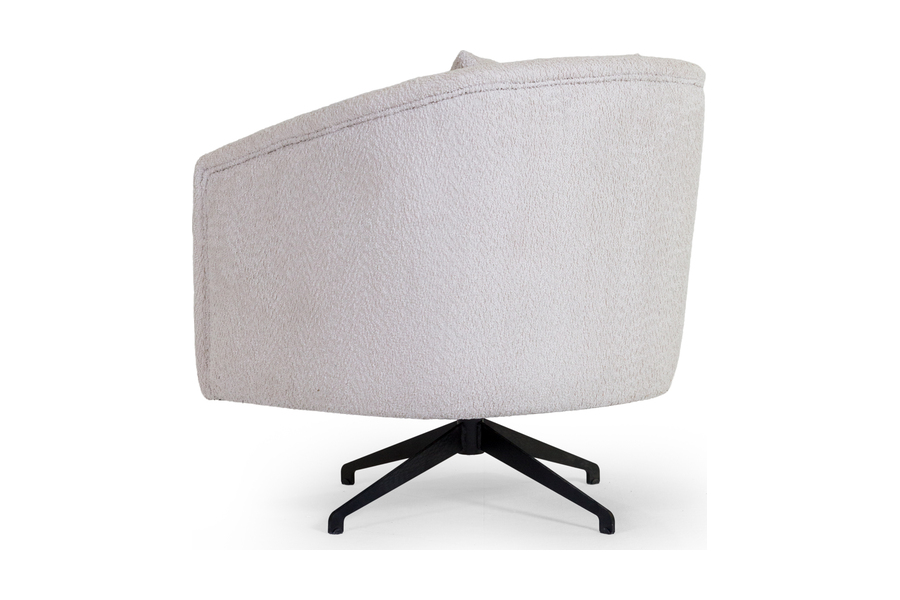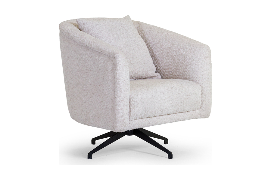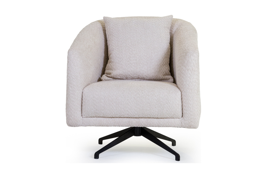 Η μεταλλική περιστρεφόμενη βάση 360° σε μαύρη απόχρωση εξασφαλίζει ευελιξία κινήσεων και λειτουργικότητα, καθιστώντας την ιδανική για καθιστικό, υπνοδωμάτιο, γραφείο ή επαγγελματικό χώρο. Το αναπαυτικό μαξιλάρι πλάτης ενισχύει την εργονομία και προσφέρει επιπλέον στήριξη.