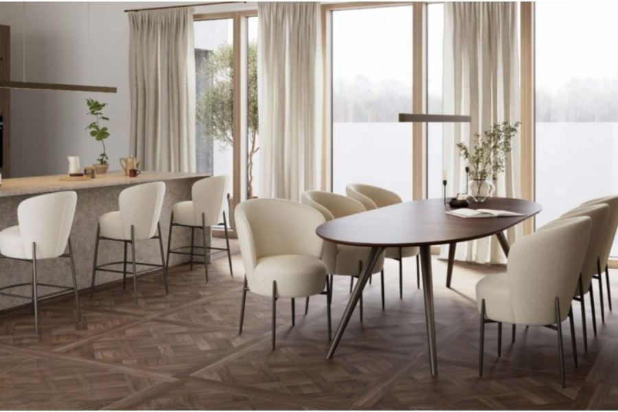 Αποτελεί εξαιρετική επιλογή για όσους επιθυμούν να δημιουργήσουν έναν ενιαίο και κομψό χώρο τραπεζαρίας με μοντέρνο χαρακτήρα και διακριτική πολυτέλεια.